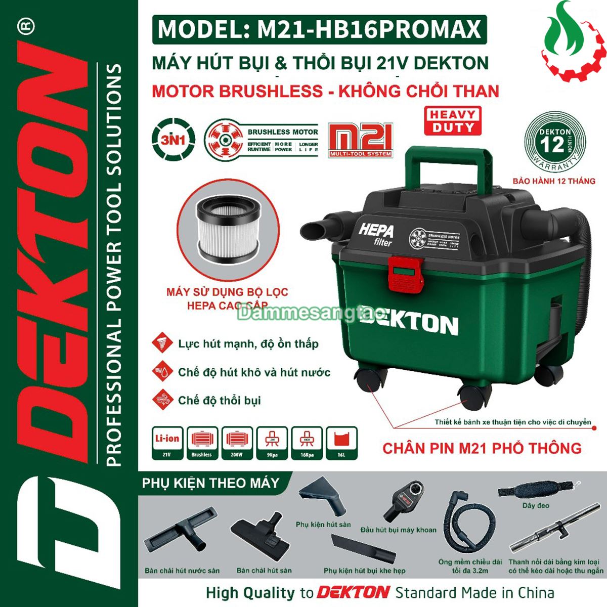 Máy hút bụi mũi khoan dekton M21-HB16PROMAX ( CHƯA CÓ PIN VÀ SẠC):