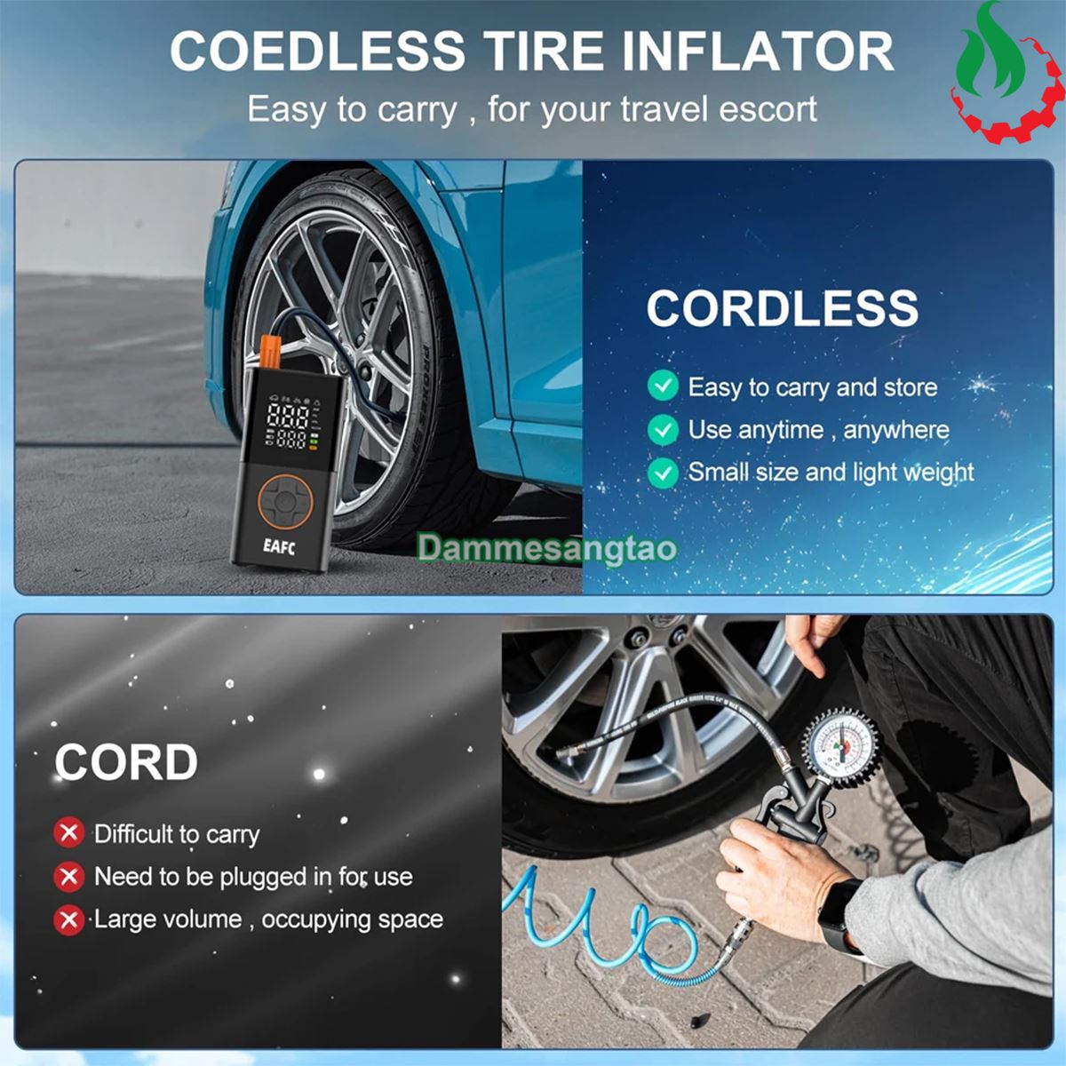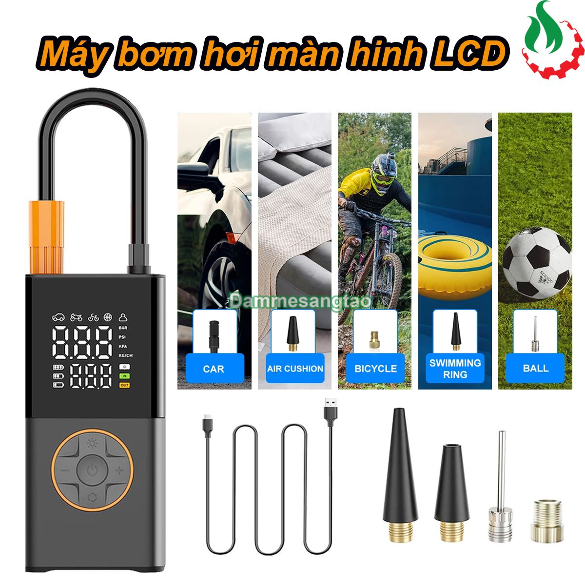 * Chức năng: Bơm hơi, đo áp suất, tự động sạc và dừng, năm chế độ bơm hơi, đèn pin, cứu hộ SOS, sạc dự phòng, chiếu sáng
