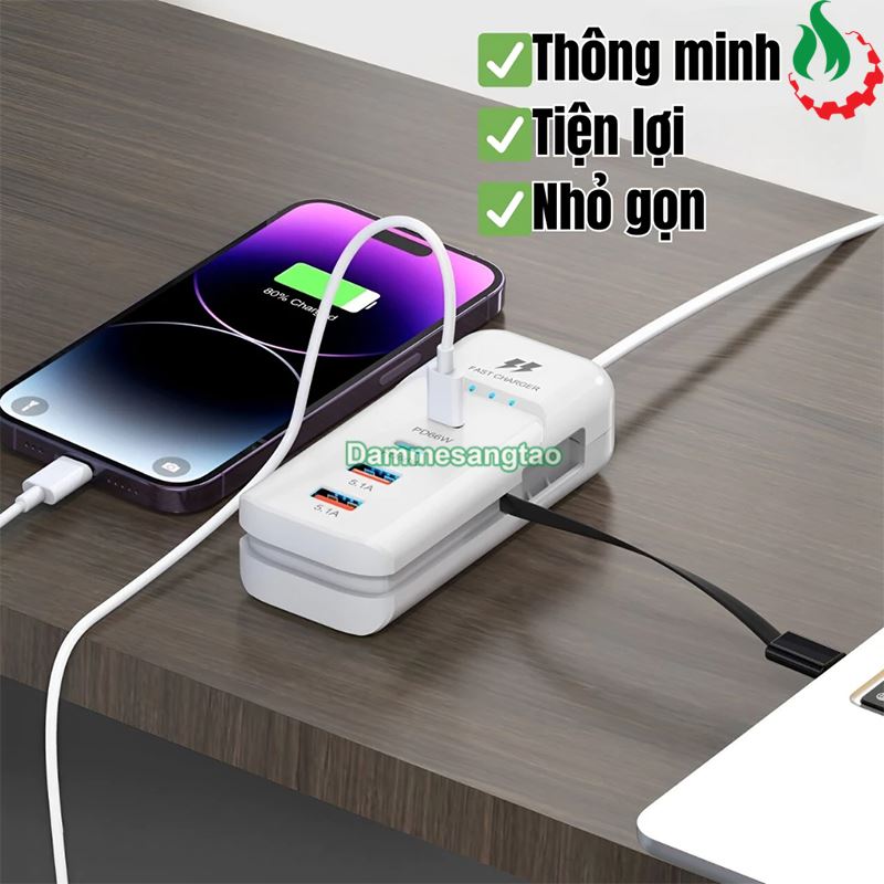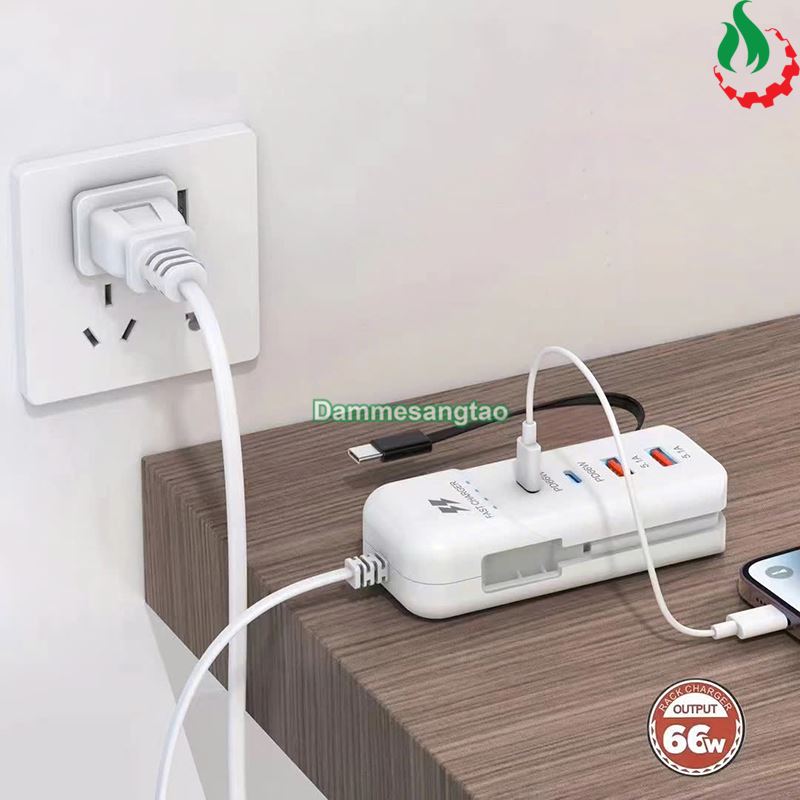 - Bộ sạc nhanh bao gồm: 2 cổng PD 66W, 2 cổng USB, 1 cáp type C