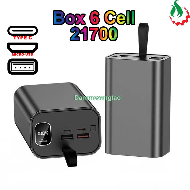 - Box chỉ dùng cho pin 21700 Li-ion 3.7V (Tối đa 6 Cell)