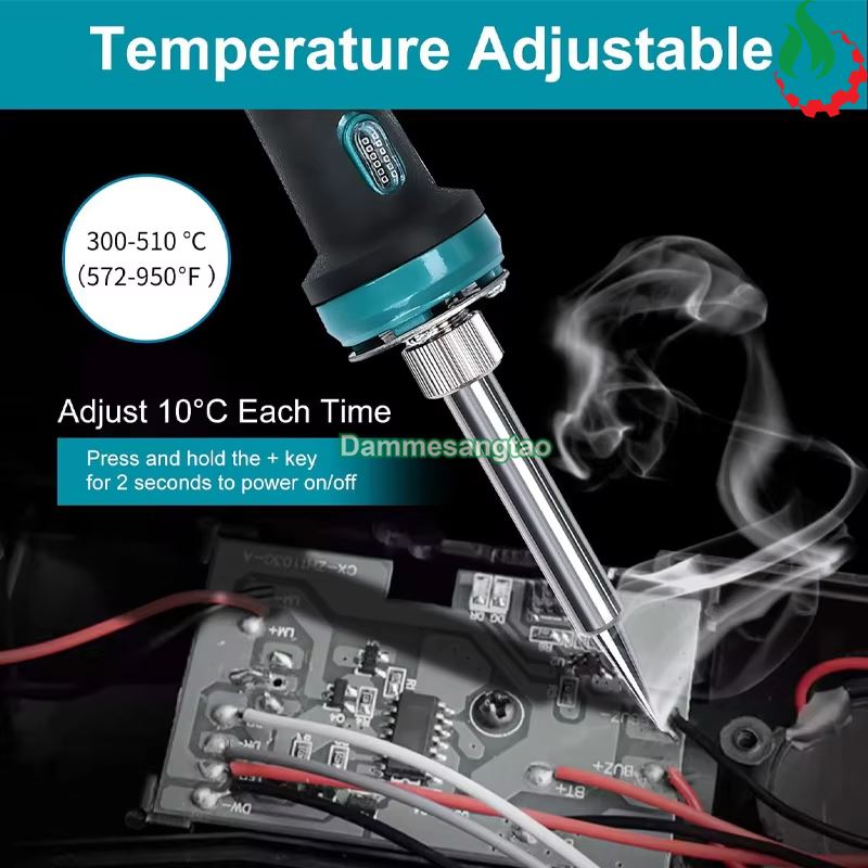 【Nhiệt độ có thể điều chỉnh】: Bộ mỏ hàn không dây có thể điều chỉnh nhiệt độ 300-510 ℃ (572-950℉), bạn có thể đặt giá trị mong muốn để đáp ứng nhu cầu hàn của mình.