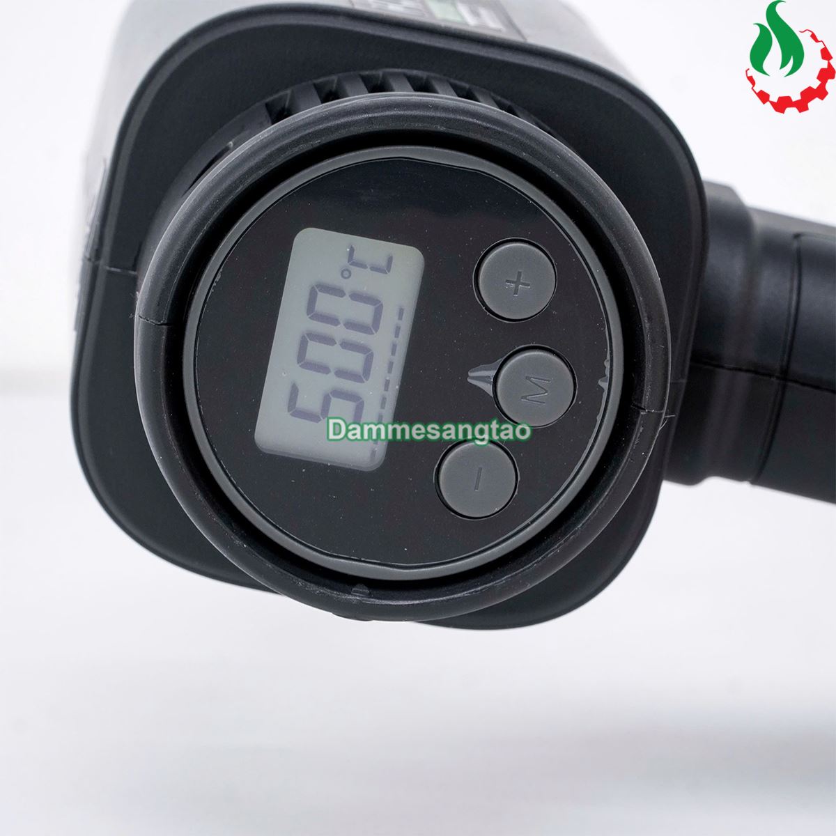 - Nhiệt độ điều chỉnh linh hoạt: Phạm vi nhiệt độ rộng từ 50°C đến 650°C giúp bạn dễ dàng điều chỉnh nhiệt độ phù hợp với từng loại vật liệu và công việc.