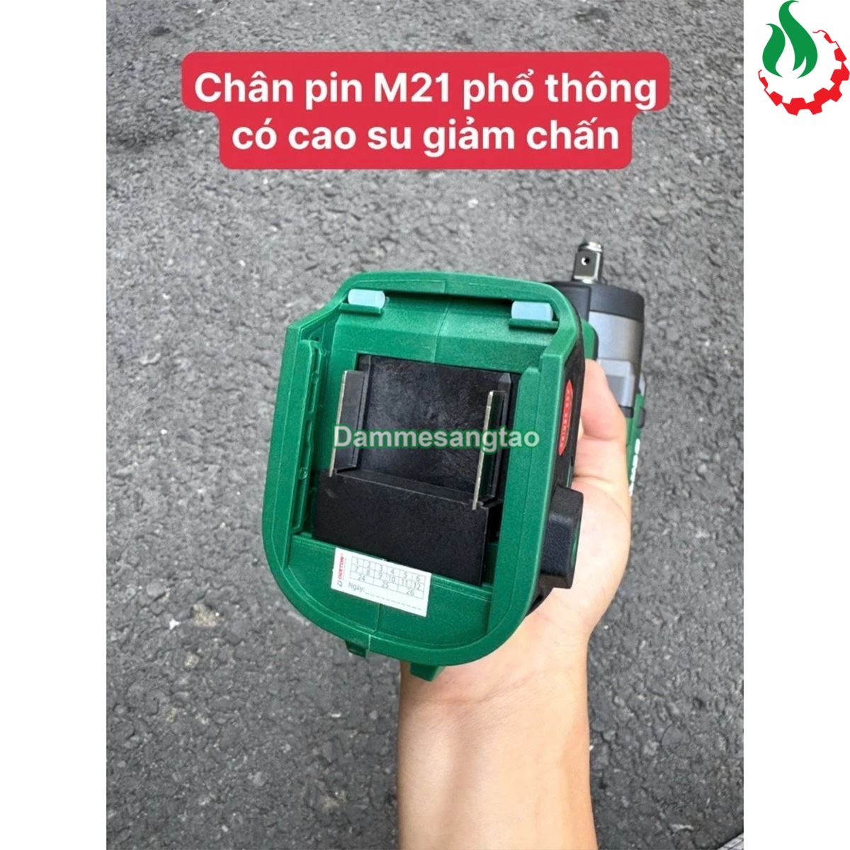 8. Thiết kế gắn móc treo ở hai bên, chân pin M21 phổ thông có cao su giảm rung chấn