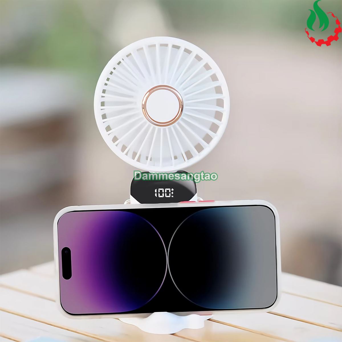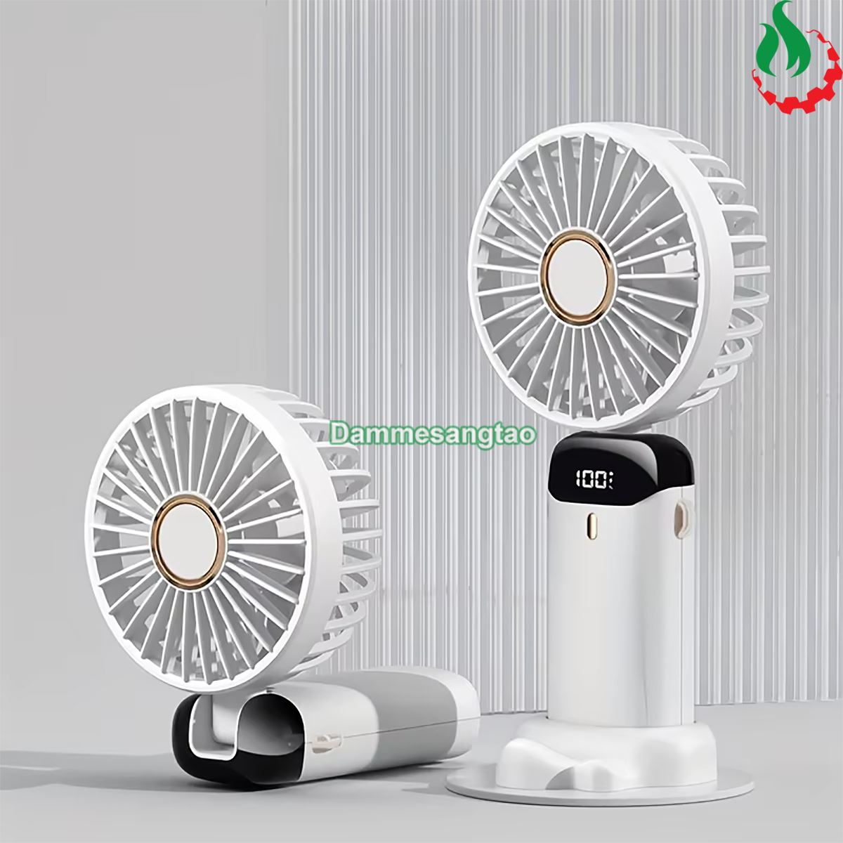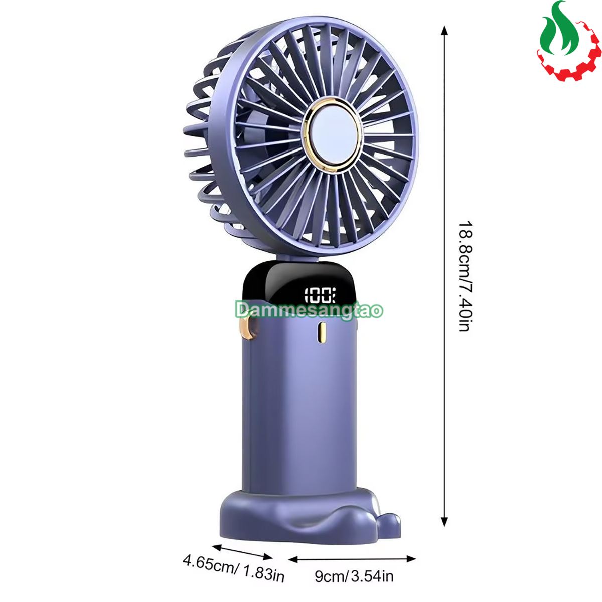 - Màn hình LED hiển thị % pin và cấp độ gió thổi