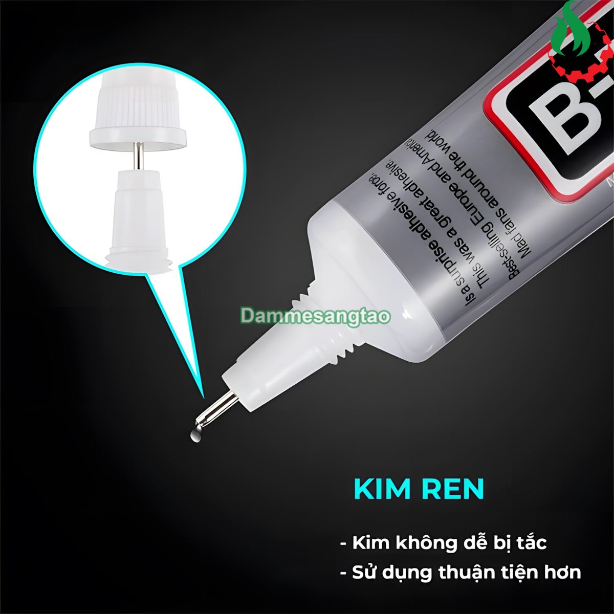 - Đầu keo là ống kim nhỏ, có thể dán ở những chi tiết nhỏ cần độ chính xác cao. Nắp có kim nhọn để thông ống cũng như bịt kín ống khi đóng lại. Giữ keo dùng được lâu dài.