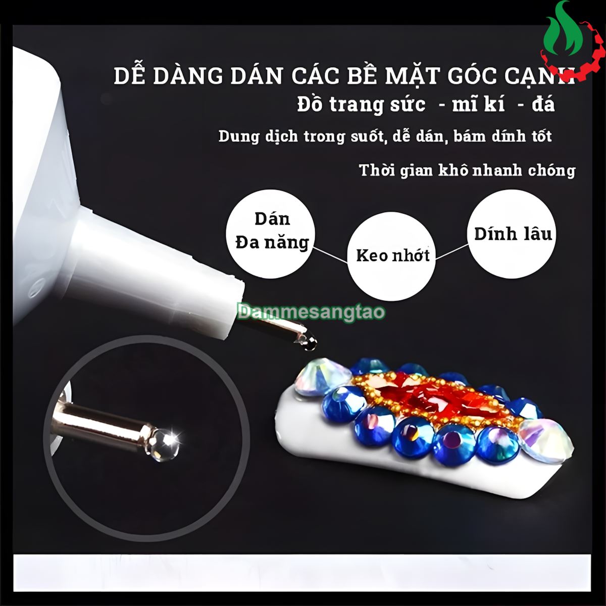 - Keo dán Acrylic với độ dính cao và nhanh khô. Dễ sử dụng, thích hợp dán mọi chất liệu tự kim loại, gỗ, đá, thủy tinh cho tới đồ nhựa, da.