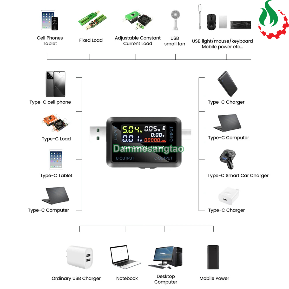 4. Kiểm tra nhiều loại thiết bị kỹ thuật số USB và Type-C: dễ dàng kiểm tra nhiều loại bộ sạc, cáp dữ liệu, pin sạc, máy tính xách tay, điện thoại di động, thiết bị kỹ thuật số Type-C, v.v.