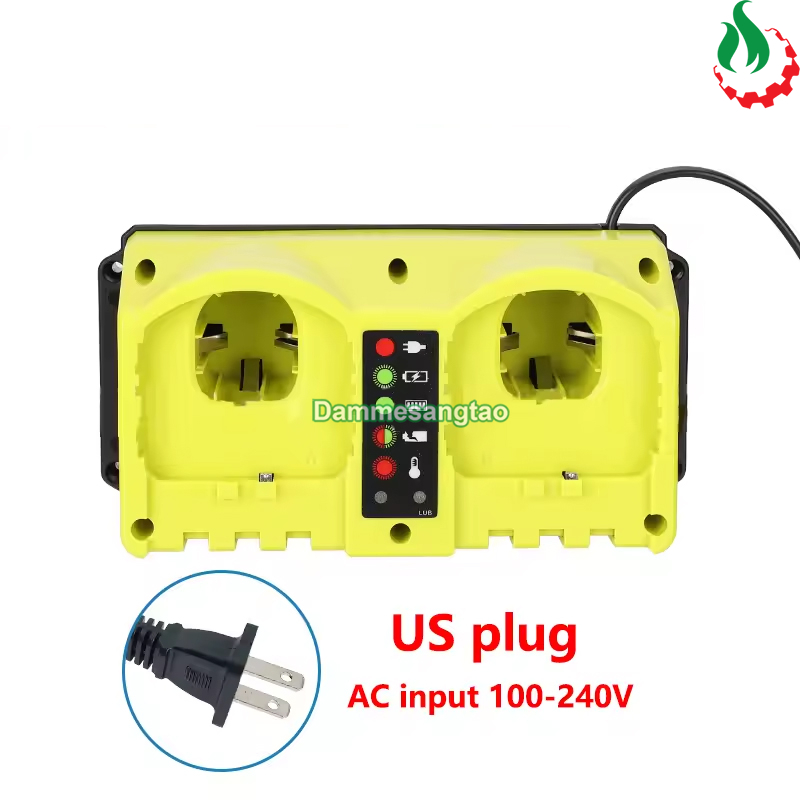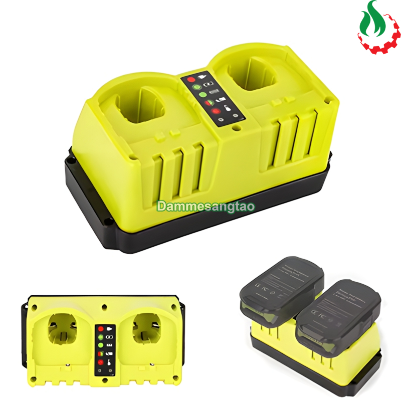 - Sạc được pin Ryobi từ 12V - 14.4V - 18V Li-ion, Ni-Mh/Cd. Khi sạc đèn báo màu đỏ, đầy báo màu xanh.