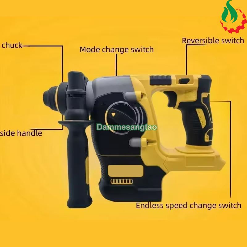 - Núm vặn ở giữa để điều chỉnh 3 chế độ khoan: Chế độ búa, chế độ khoan và chế độ khoan kết hợp với búa.