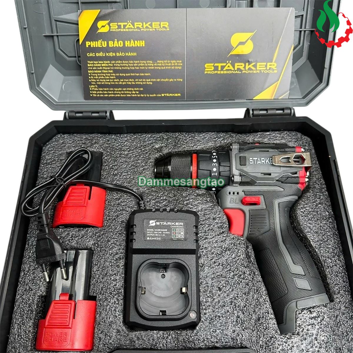 Máy khoan pin 16.8V STARKER SK-1045GR có cấp trượt không chổi than 60N.m Bộ Máy Bao Gồm: