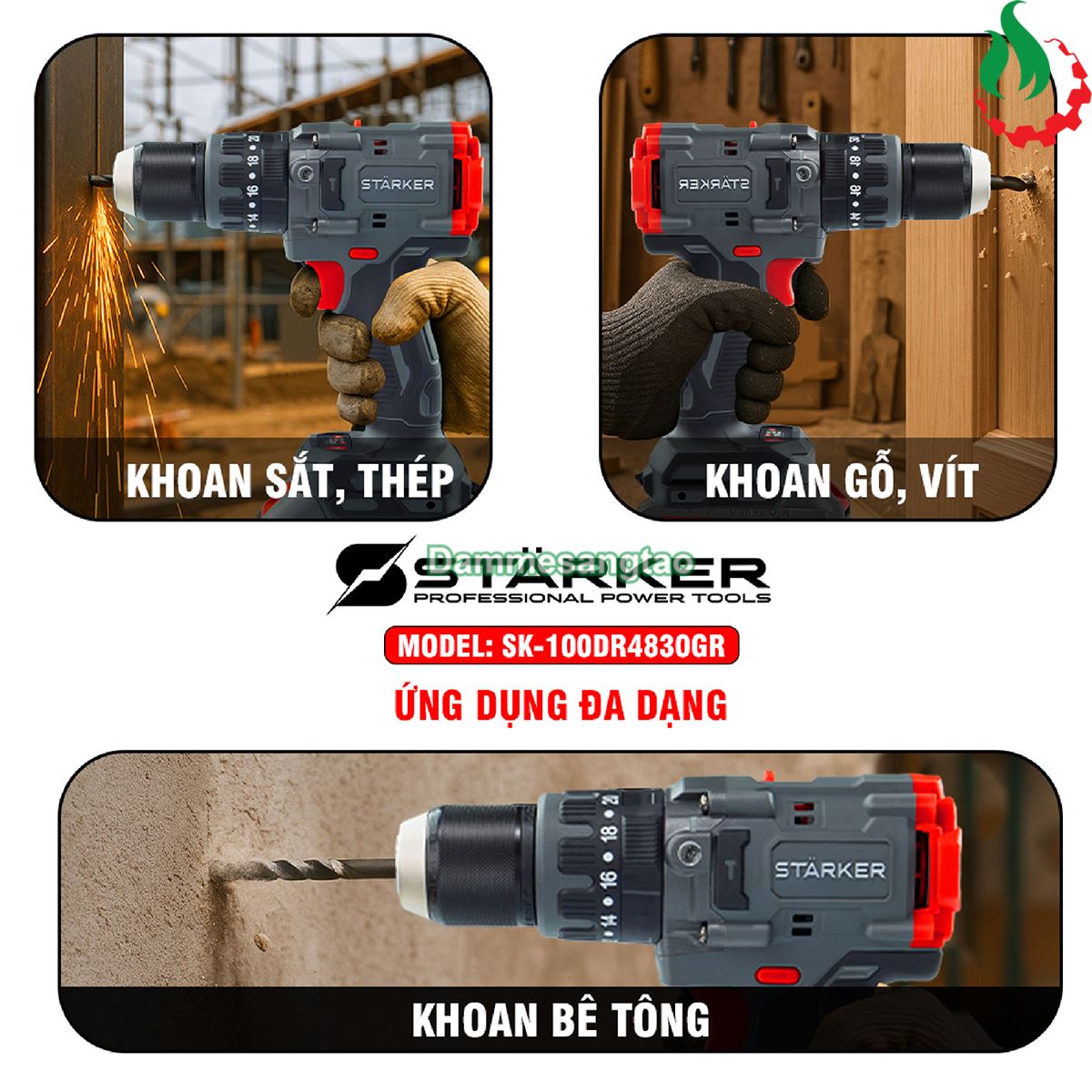 - Chức năng: Khoan bê tông, khoan tường, khoan sắt, khoan gỗ, gạch, nhôm, tôn, bắt vít, vặn ốc...