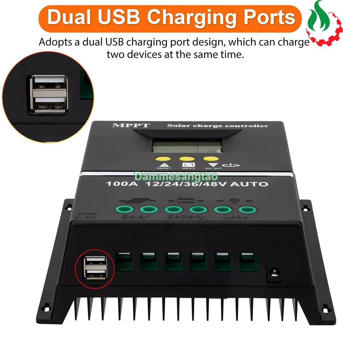 - Ắc quy 48V, tấm pin mặt trời tối đa 4800W