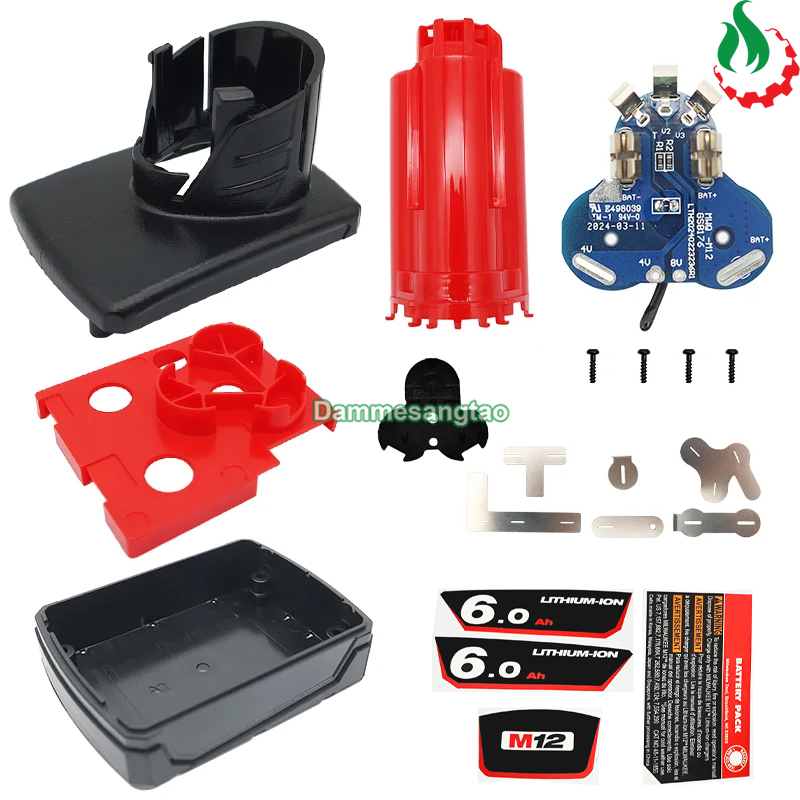 - Vỏ, mạch pin Milwaukee 3S 10.8V/11.1V, chứa 6 cell Li-ion 18650 và nhận sạc zin Milwaukee