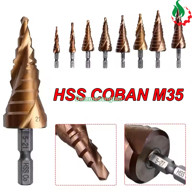 - Mũi khoan bước tháp HSS COBAN M35 khoan inox, sắt, thép trục 6.35mm (Phù hợp với tất cả các loại khoan pin và khoan điện bắn vít - Khoan bê tông không dùng được)