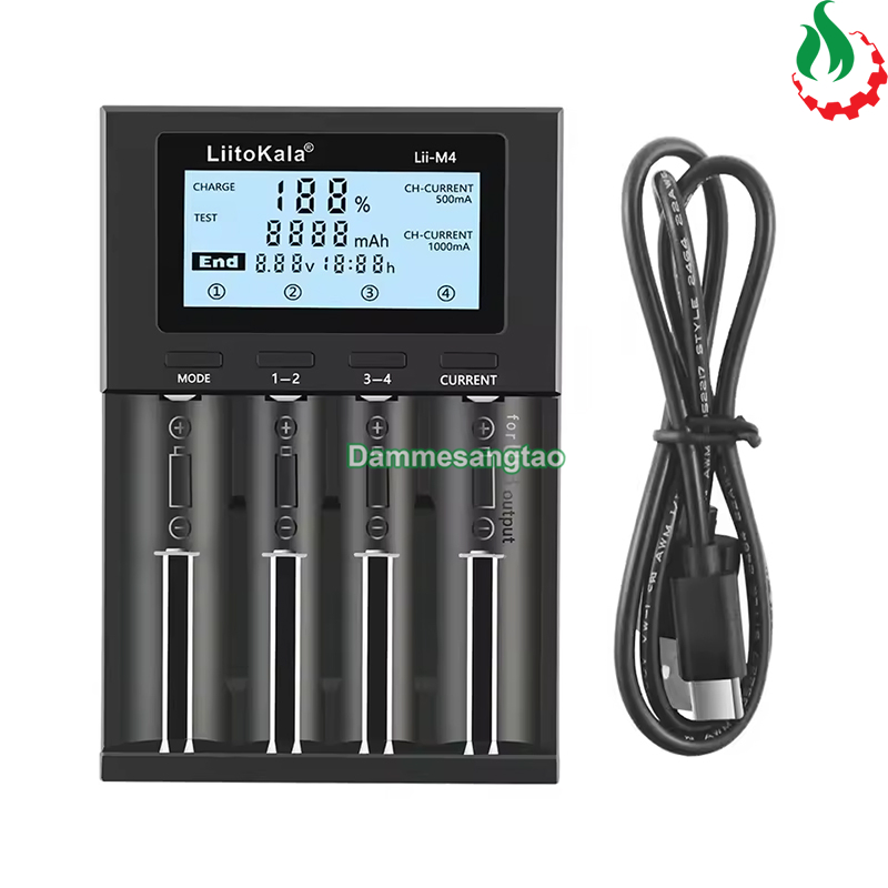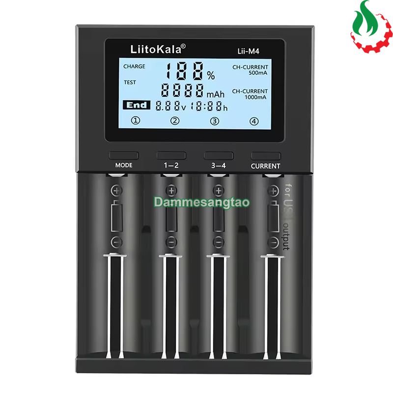 - Bộ Sạc Pin Đa Năng Liitokala Lii-M4 Sạc 4 Pin 26650-18650-14500-16340 là bộ sạc thông minh có khả năng sạc hầu hết các loại pin Li-ion, NiMH / NiCd. Ngoài sạc pin, Lii-M4 còn có chế độ kiểm tra pin, hiển thị dòng sạc, dung lượng, nội trở trên màn hình.