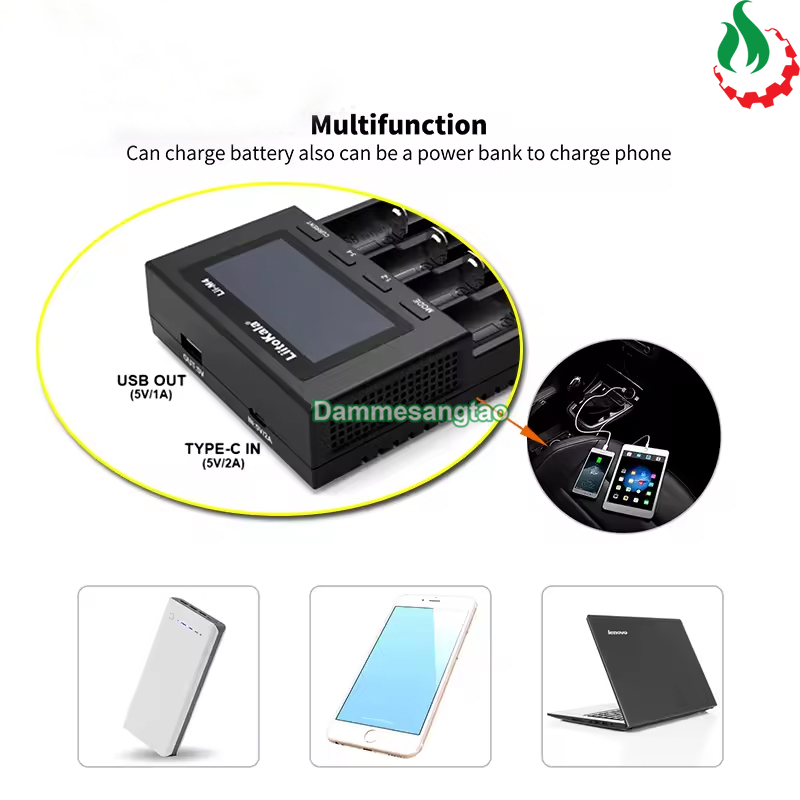 - Một tính năng nổi bật của Bộ Sạc Pin Đa Năng Liitokala Lii-M4 là dùng làm box sạc dự phòng với cổng kết nối USB.