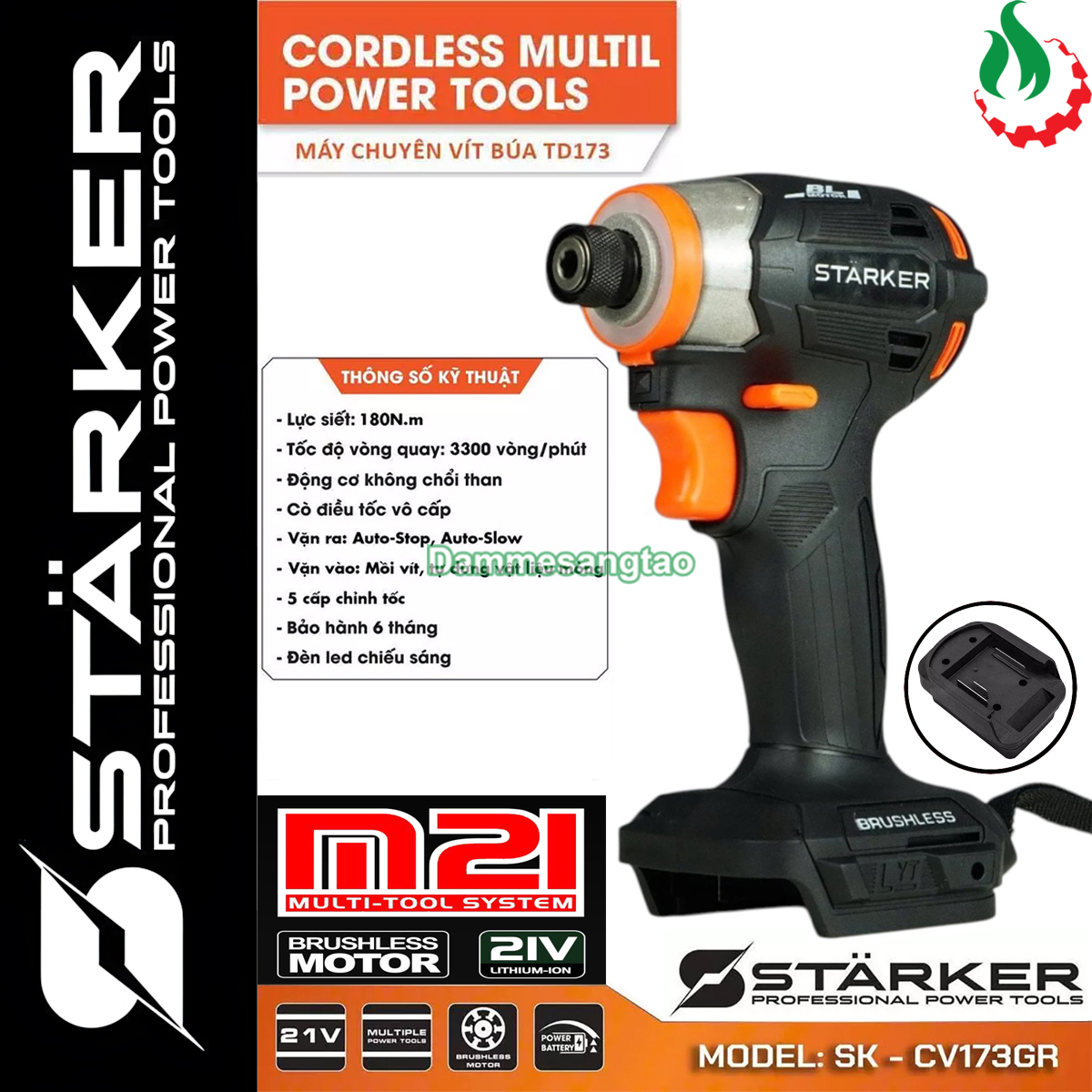 Máy chuyên vít STARKER 21v SK-CV173GR không chổi than tặng đầu bắn tôn và đầu bắn vít