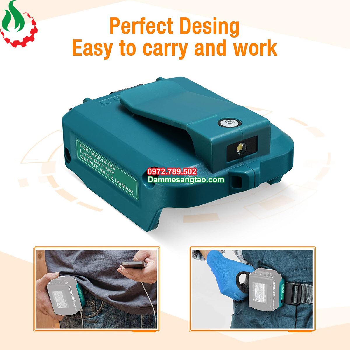 - Biến pin máy công cụ thành sạc dự phòng cao cấp cho điện thoại (tương thích với đa số các dòng điện thoại hiện nay)
