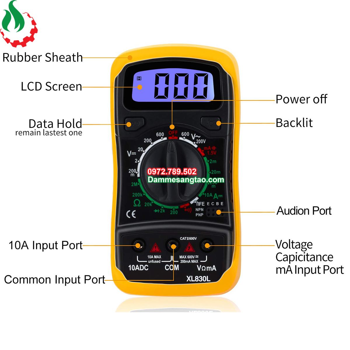 - Đồng hồ số XL830 220G là loại đồng hồ vạn năng điện tử sử dụng các linh kiện điện tử chủ động, các kết quả của phép đo được hiển thị trên một màn hình tinh thể lỏng có độ tương phản cao.