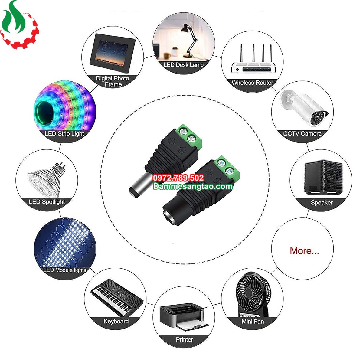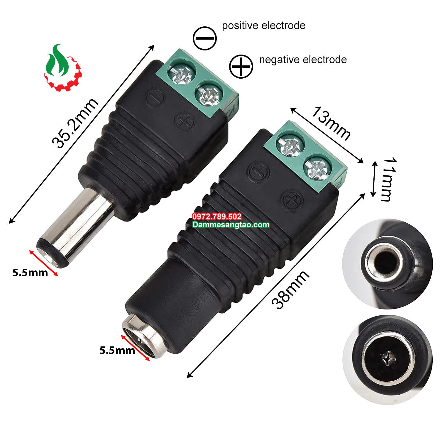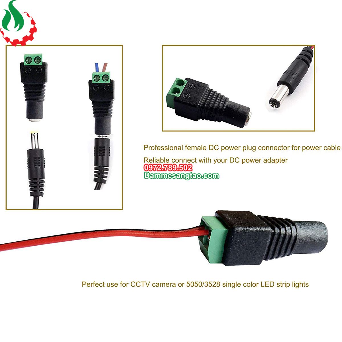 - Jack DC đực và cái đều có vít kết nối dây nguồn rất tiện lợi
