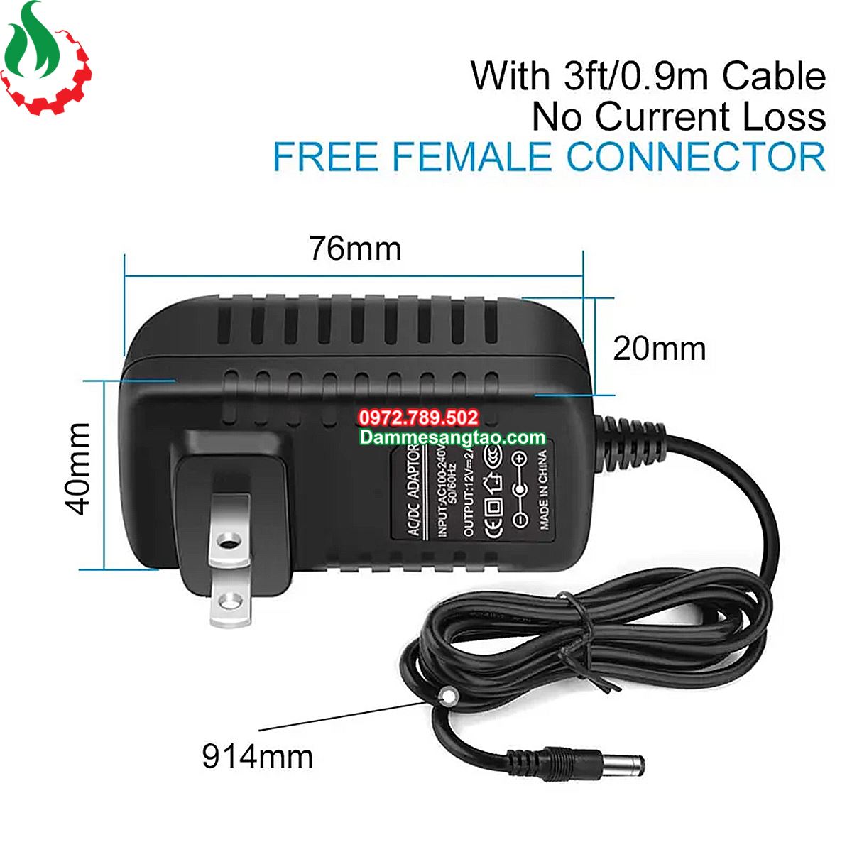 - Điện áp ra: 12VDC