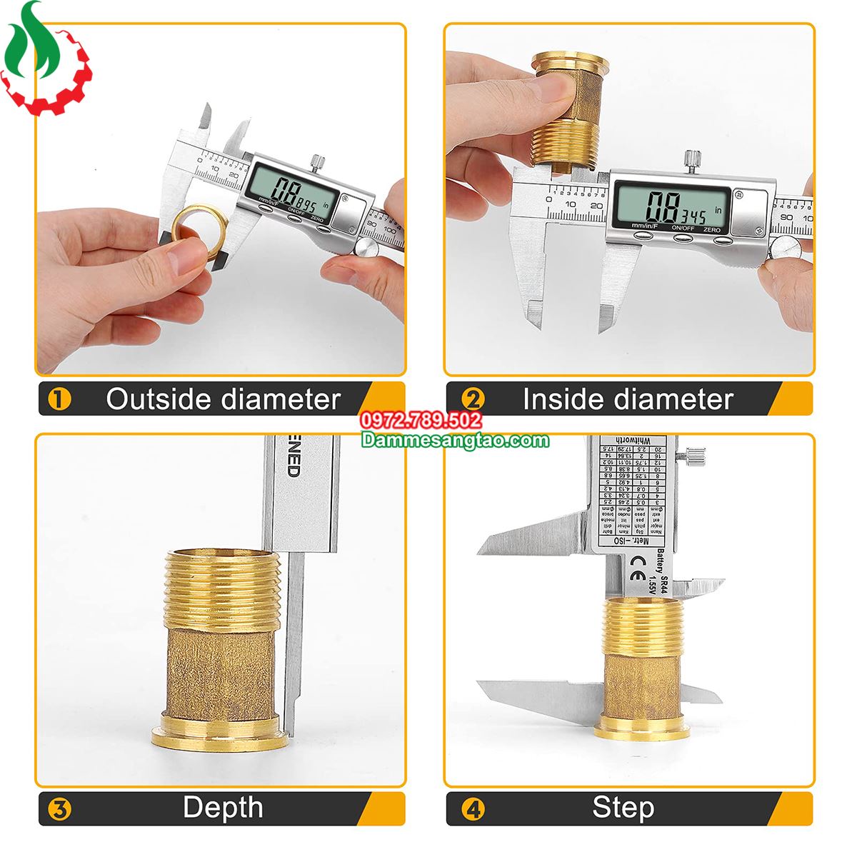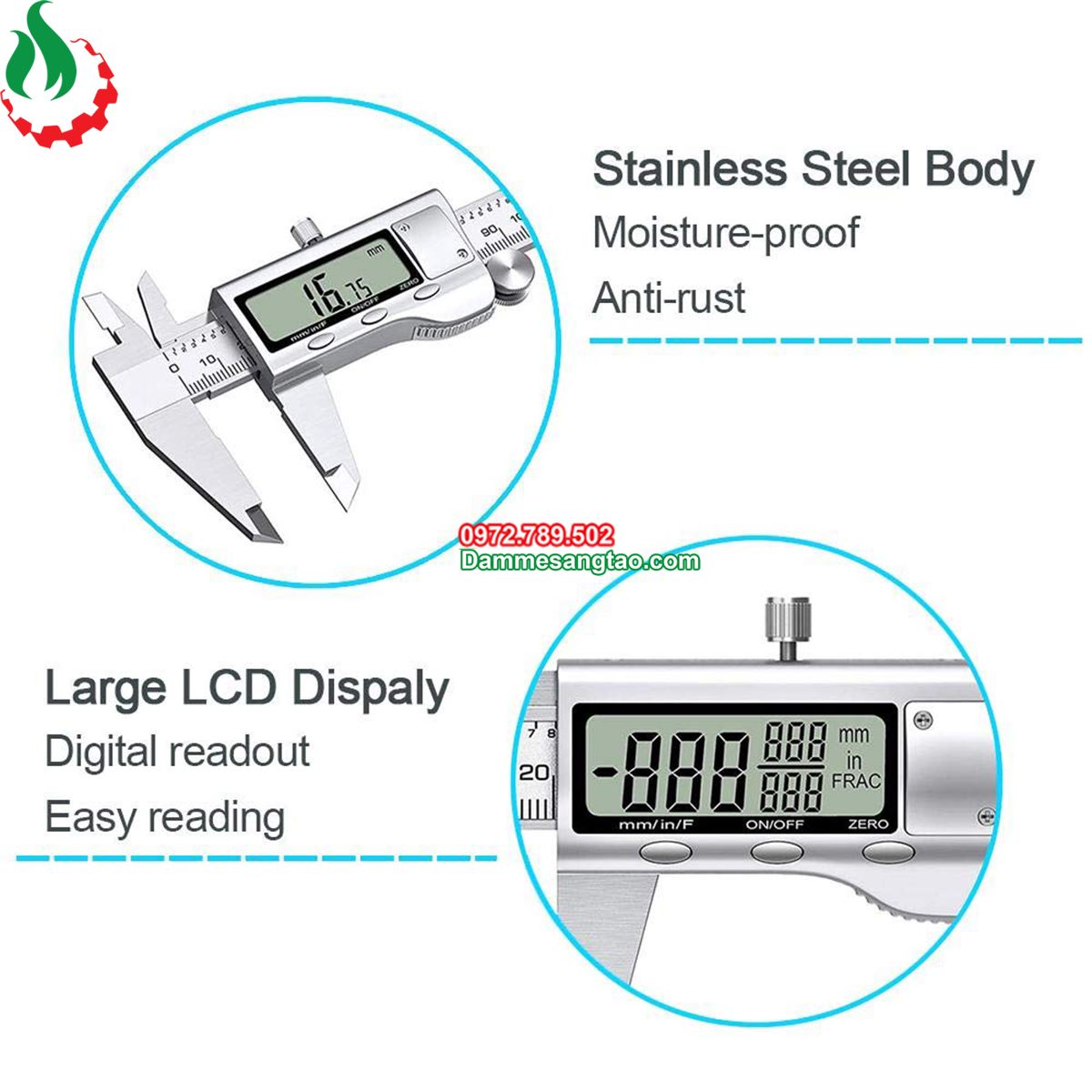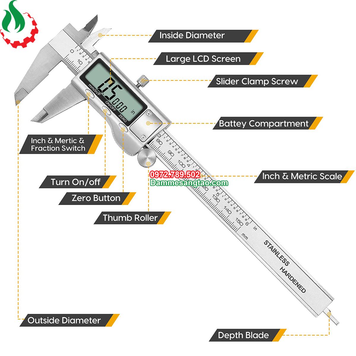 - 1x thước kẹp điện tử thép không gỉ 150mm.
