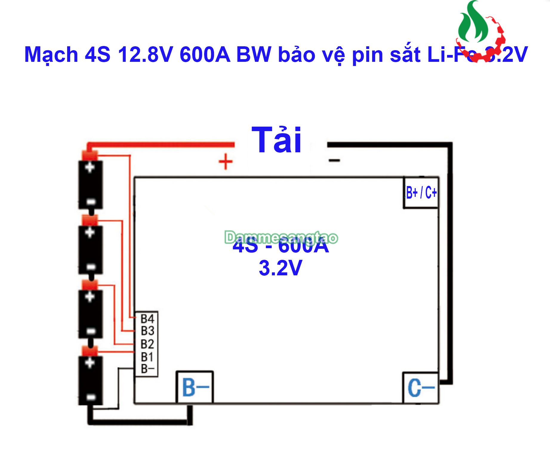 - Chức năng: Bảo vệ pin sắt Li-Fe 3.2V (Không dùng cho pin Li-ion 3.7V)