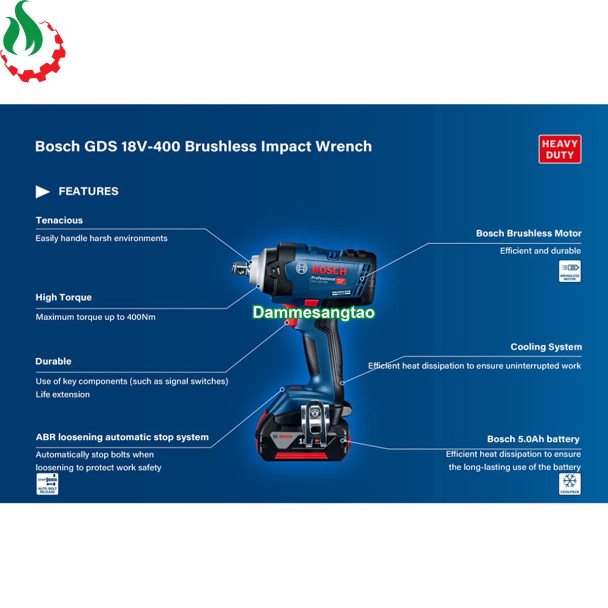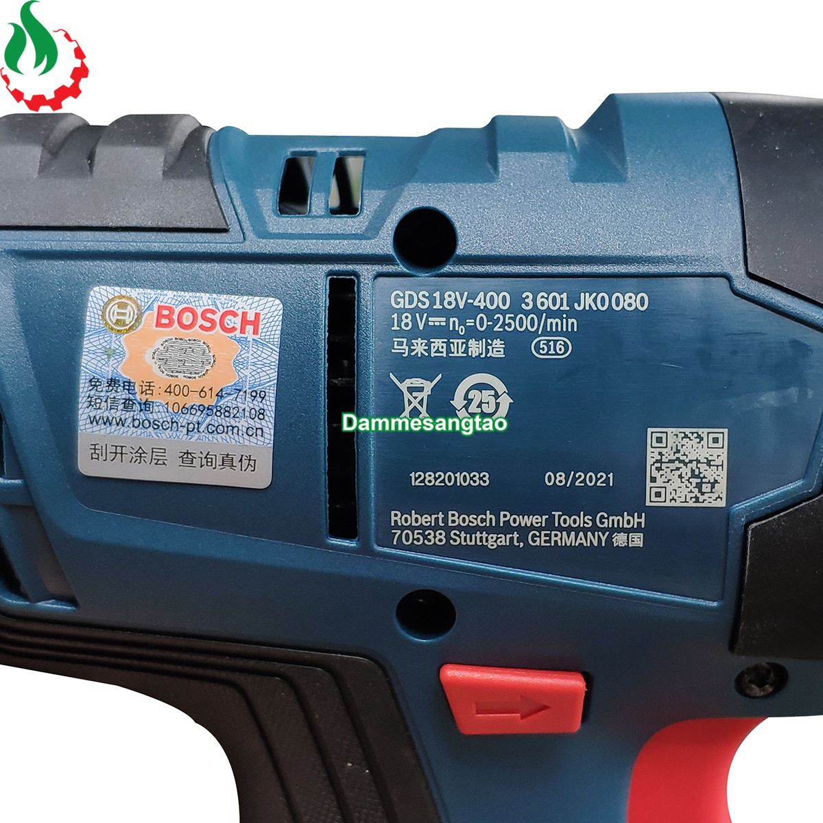 - Máy vặn ốc dùng pin Bos.ch GDS 18V-400 mạnh mẽ thiết kế không dây nhỏ gọn cho phép người sử dụng dễ dàng thực thi công việc cả trong những không gian nhỏ hẹp hay những vị trí tầm cao quá đầu. Động cơ không chổi than mạnh mẽ cung cấp năng lượng cần thiết để hoàn thành nhanh chóng, dù đó là những yêu cầu công việc đòi hỏi khắt khe về tính chính xác, hiệu quả và an toàn.