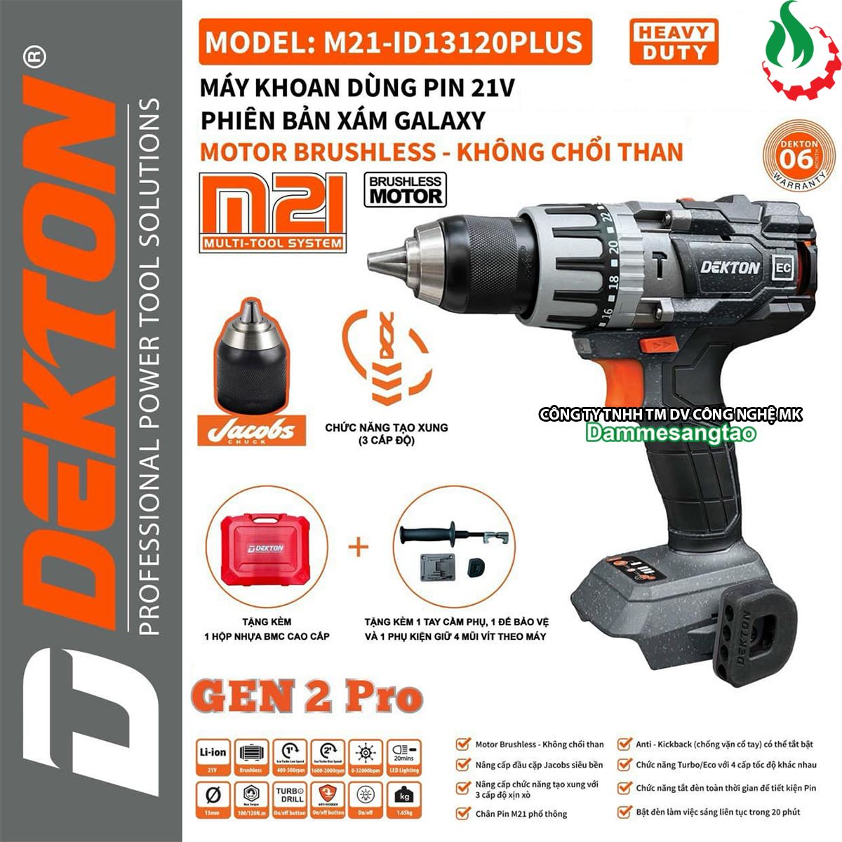 Máy khoan pin 21V Dekton M21-ID13120Plus 120Nm (Chống giật cổ tay)