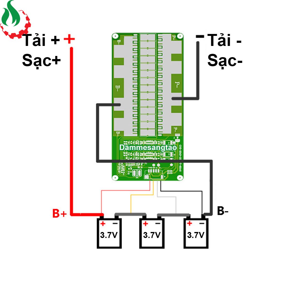 - Điện thế sạc đầy (sạc bảo vệ và cân bằng): 12.6VDC