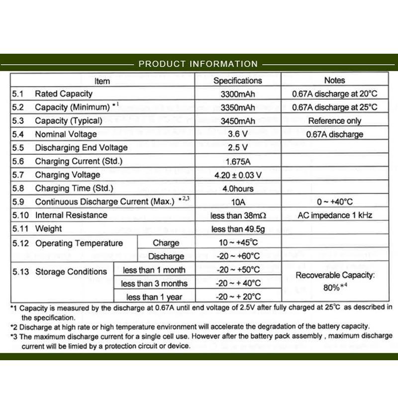 - Điện thế sạc đầy: 4.2V