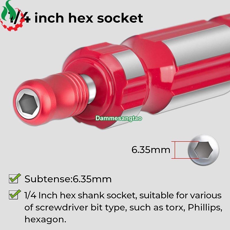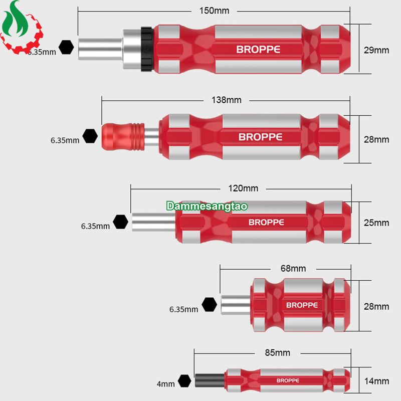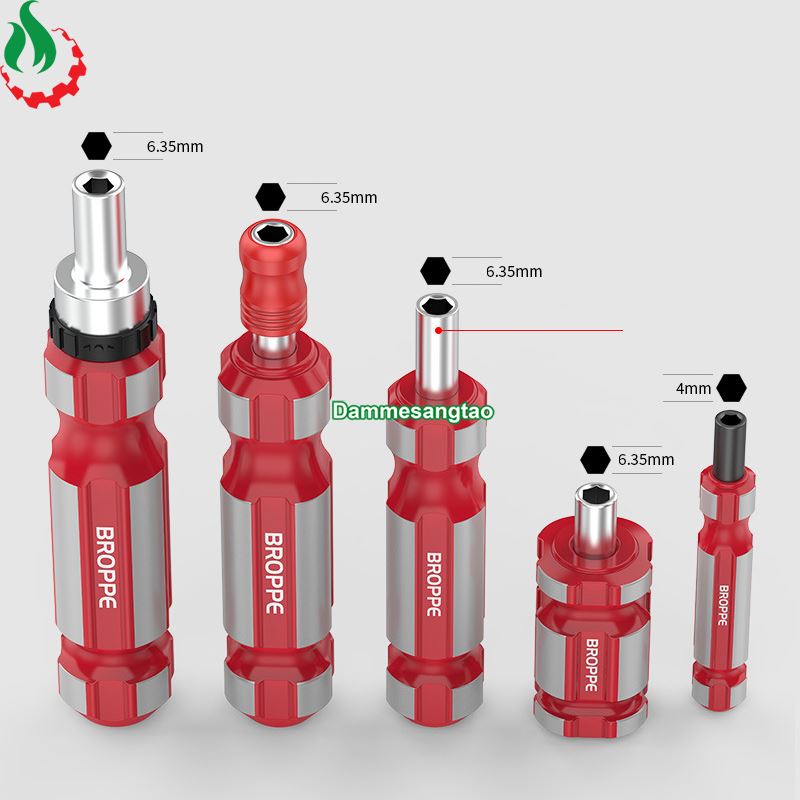 1. Cung cấp 5 loại tay cầm, phù hợp với các loại mũi vặn vít chuôi 4mm hoặc 1/4 Inch.