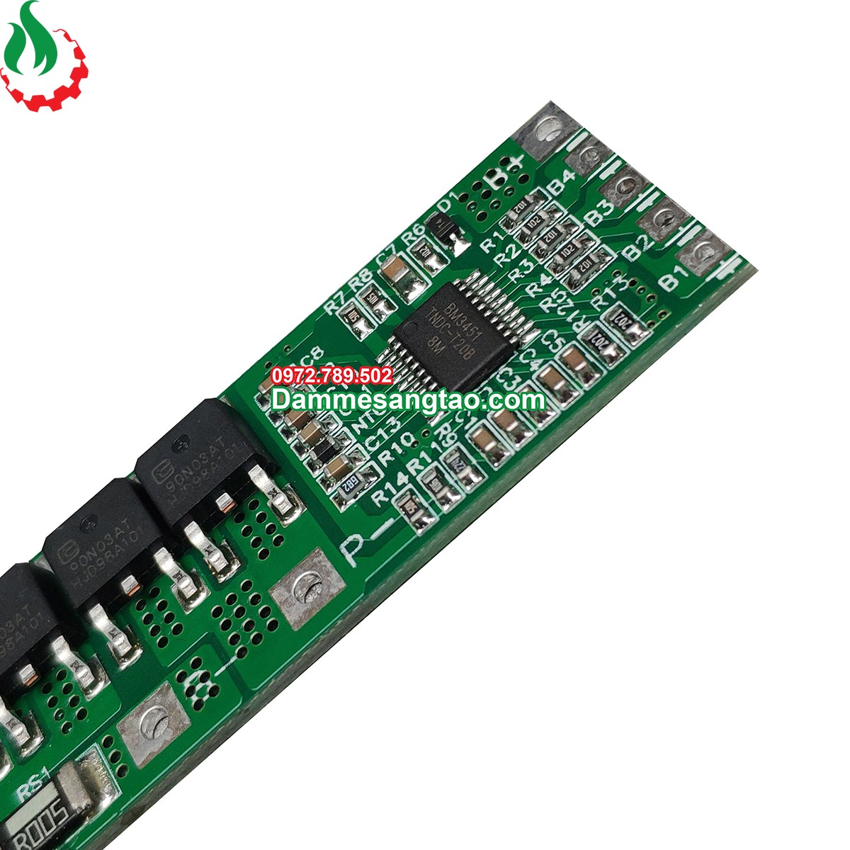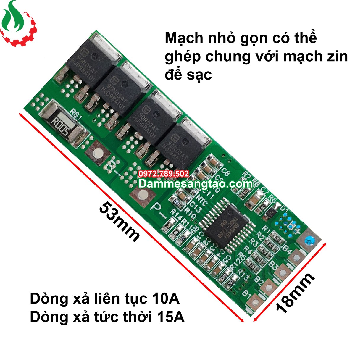 - Chức năng: Sạc và bảo vệ cell Li-ion, dùng ghép mạch zin trong pin máy khoan, máy bắt vít,... có mức điện thế từ 18v. Sử dụng 5 (5 cặp) cell Li-ion nối tiếp.