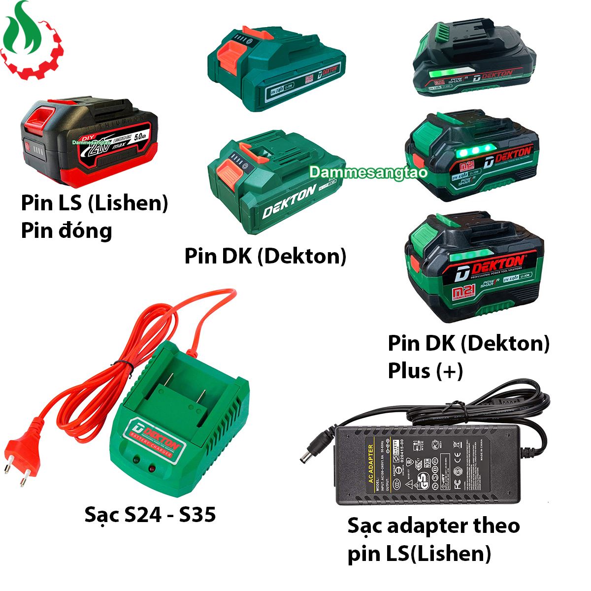 3. Máy pin dekton(DK) + sạc dekton(S24) (Tùy chọn pin 2AH - 3AH - 4AH - 5AH - 6AH)