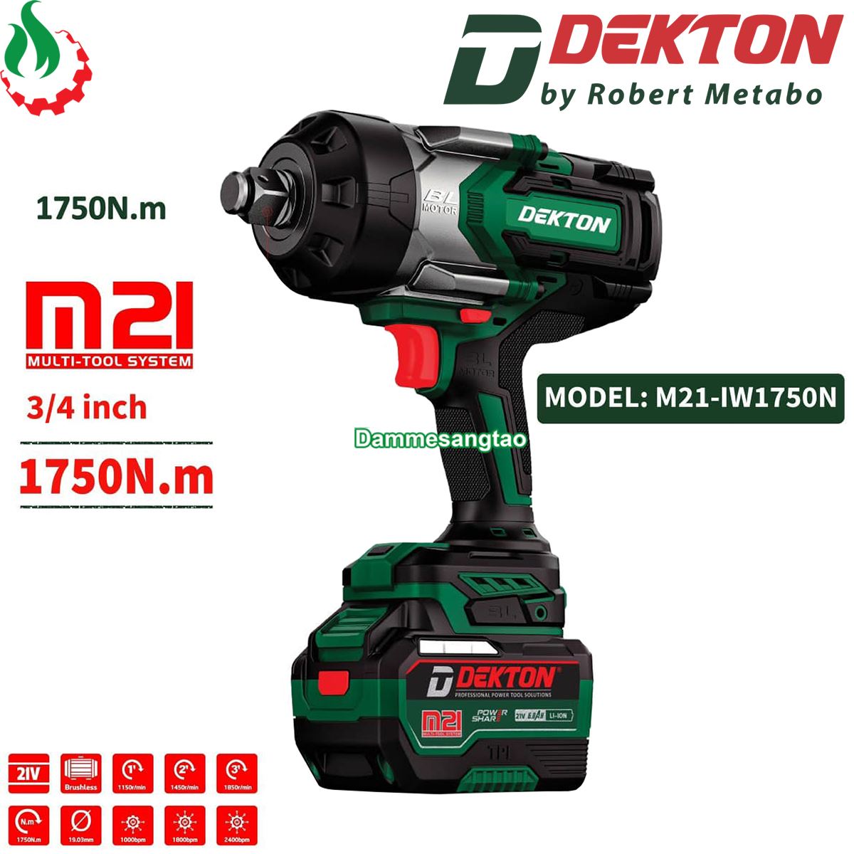 + Pin tùy chọn của shop hoặc pin Dekton (Trong phân loại hàng)