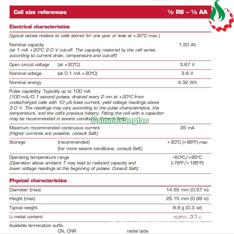 - Kích thước: đường kính 14.65mm, chiều cao 24.80mm