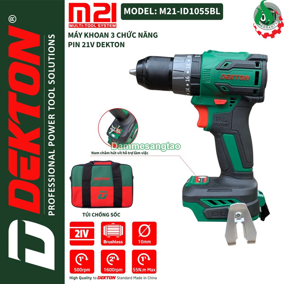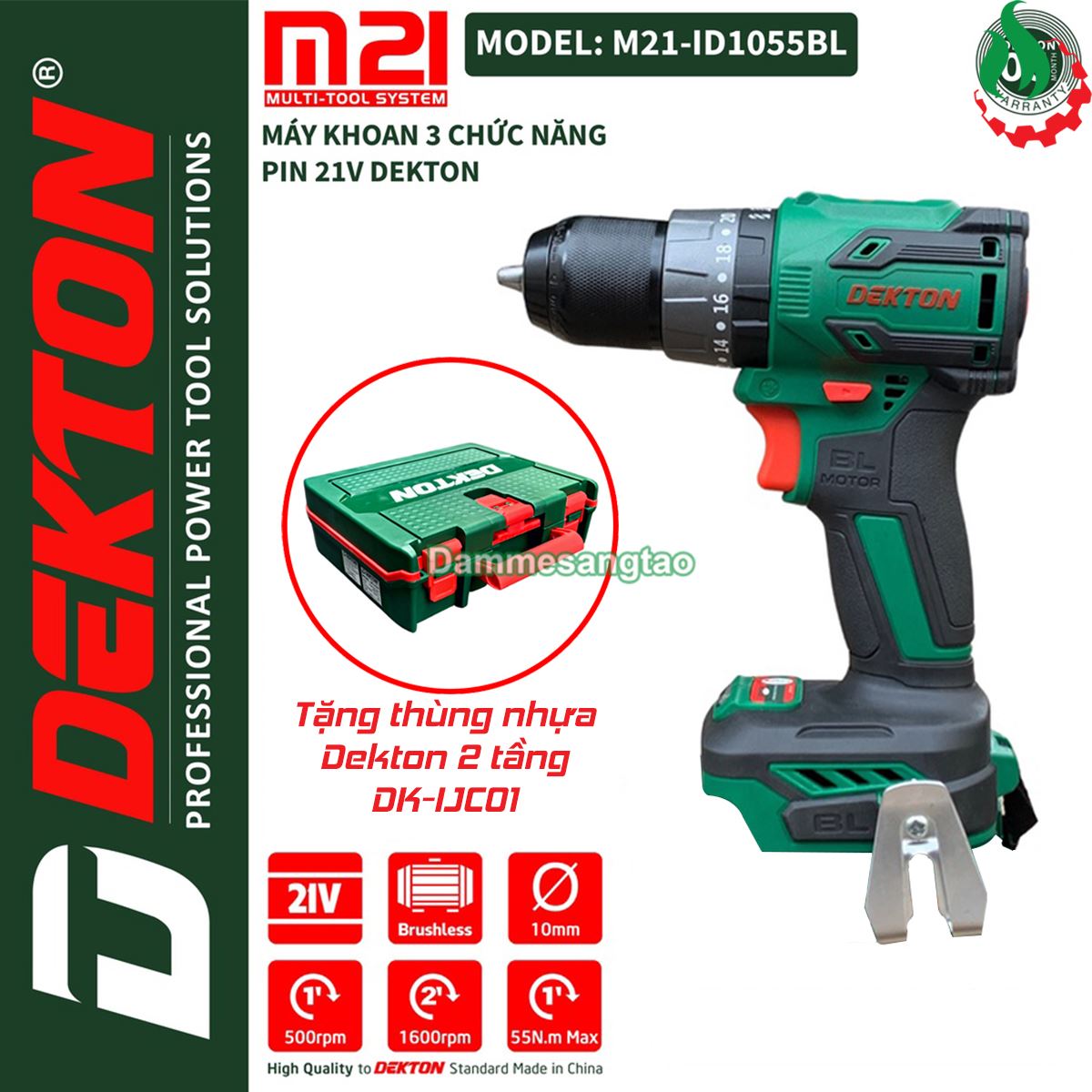 + Pin tùy chọn của shop hoặc pin Dekton (Trong phân loại hàng)