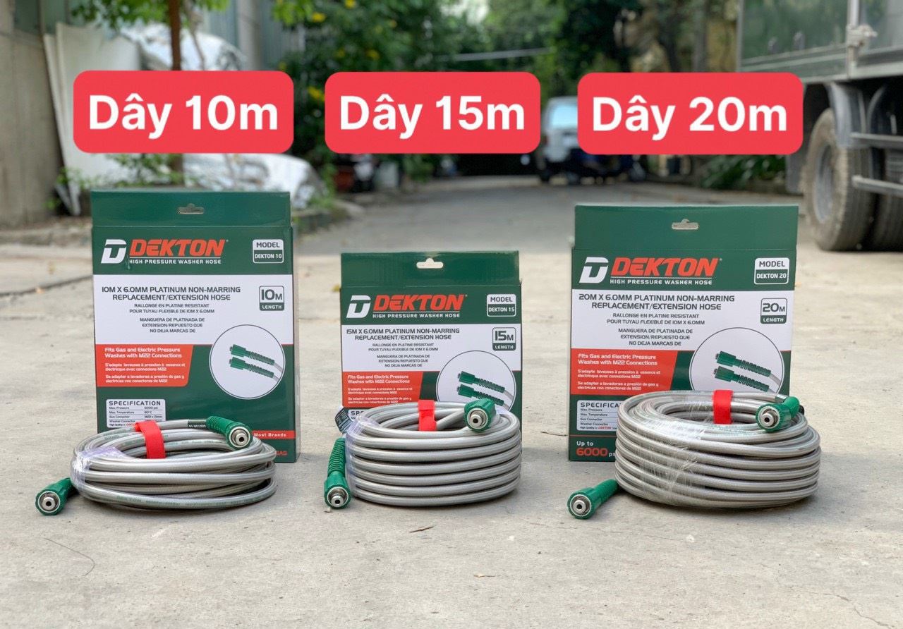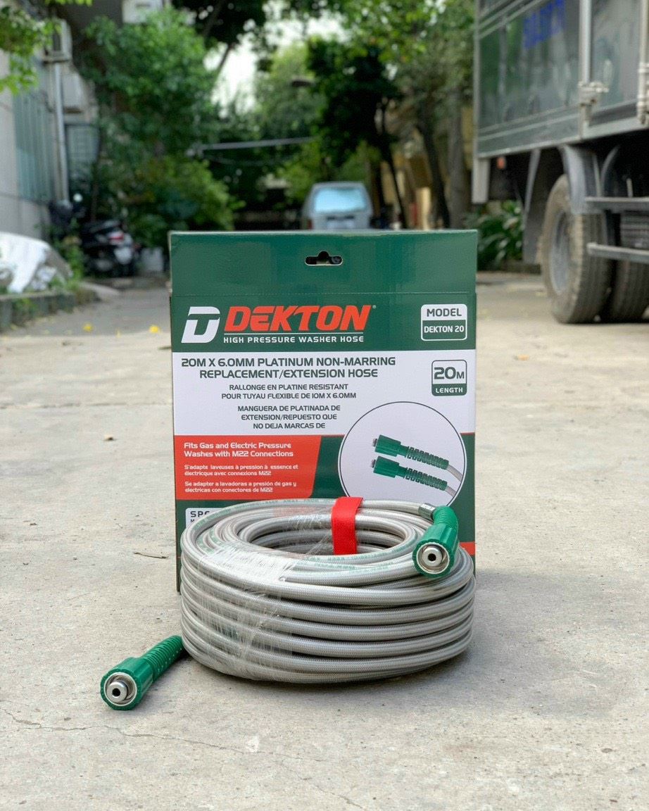 - Dây áp lực Dekton với thiết kế mềm dẻo dễ thao tác. lớp vỏ ngoài dây cũng như lõi dây được cấu tạo bằng vật liệu đặc biệt cho độ bền tuyệt đối (dây lõi lớn giúp tăng lưu lượng nước, xịt rửa đã hơn dây kém chất lượng).