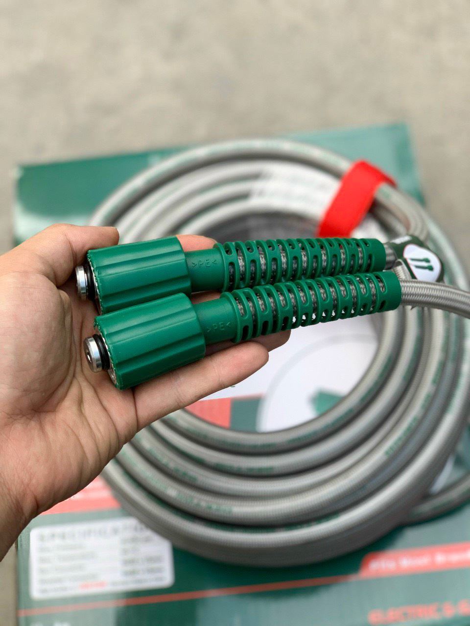 - Thông thường các dây áp lực theo máy rửa trên thị trường chất lượng không được tốt vì đa số nhà sản xuất muốn giảm giá thành máy rửa nên dây đi kèm chất lượng sẽ không tốt, mau hư, nhanh hỏng.
