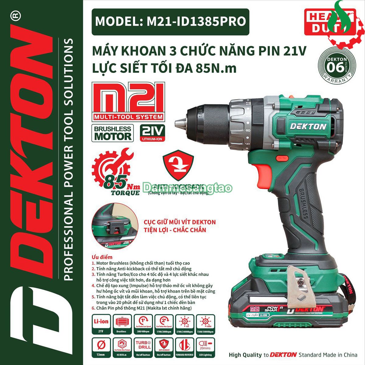 Máy khoan pin 21V Dekton M21-KB1385PRO 85Nm