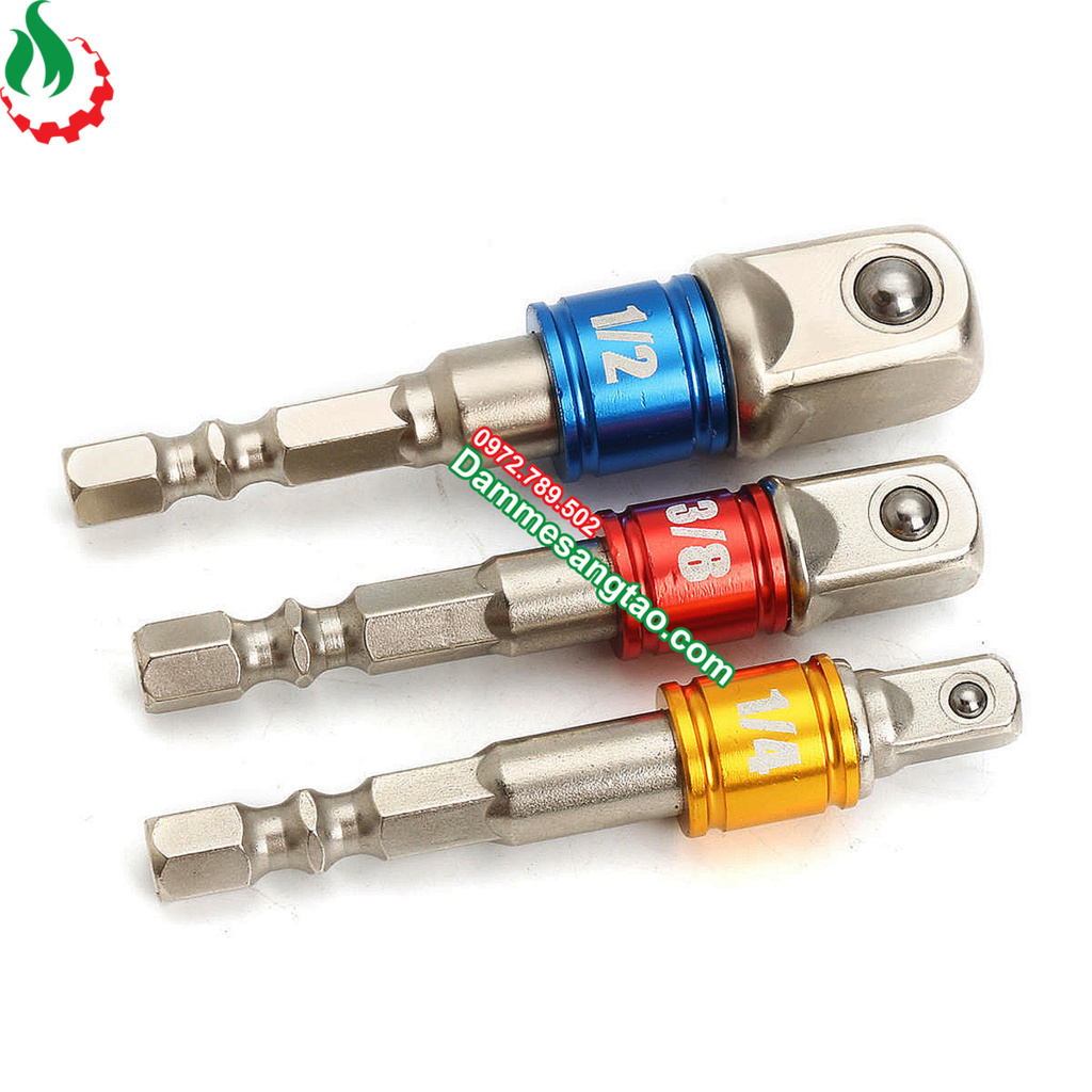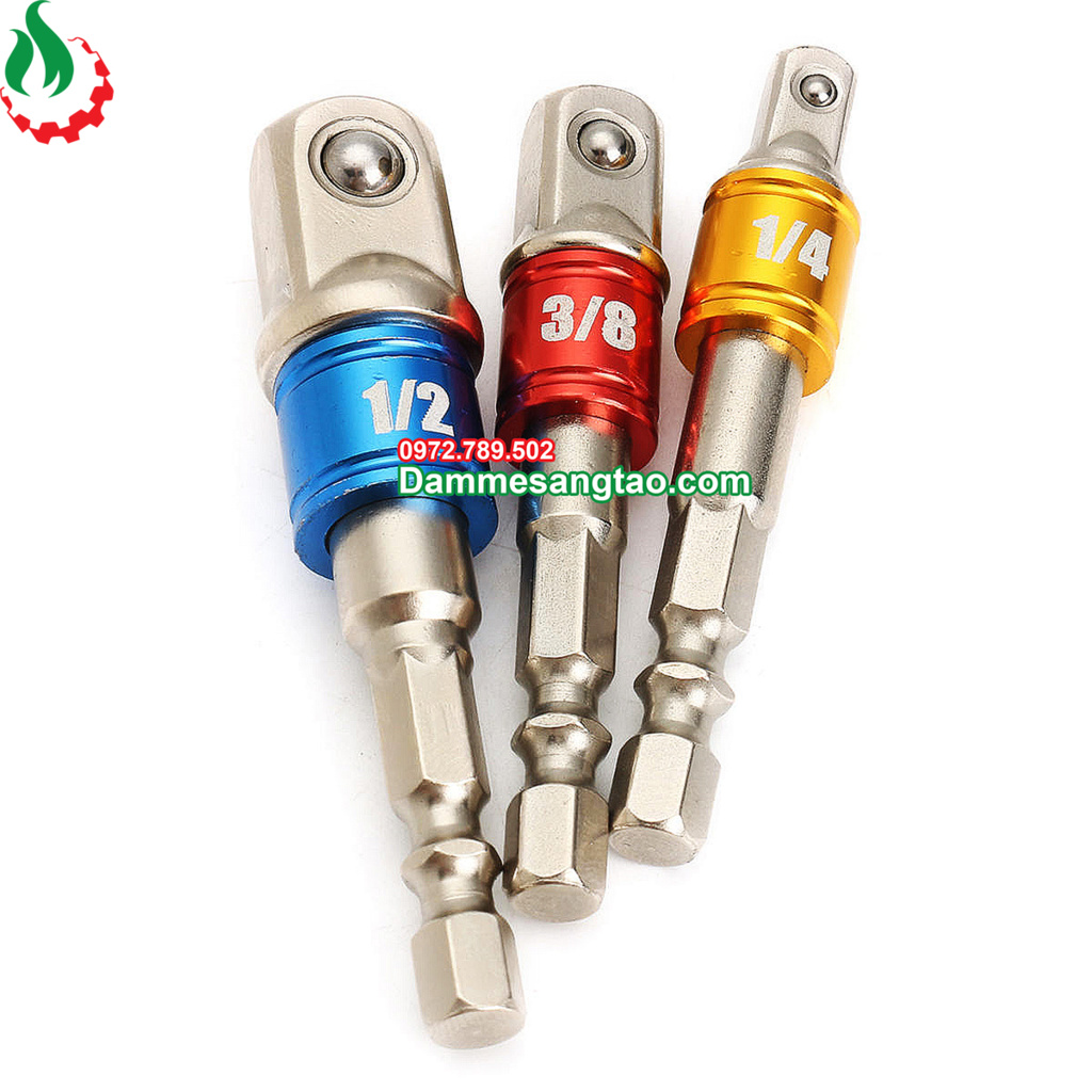 - Đầu chuyển chui lục giác 1/4 sang bulong 1/4, 3/8, 1/2 thông dụng hiện nay