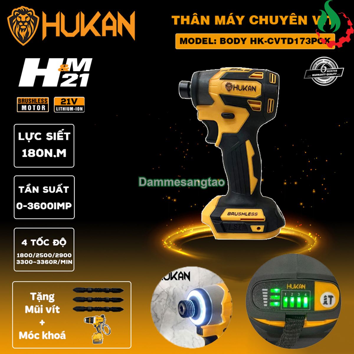 Máy bắn vít pin 21V Hukan HK-CVTD173 180Nm (Không chổi than)