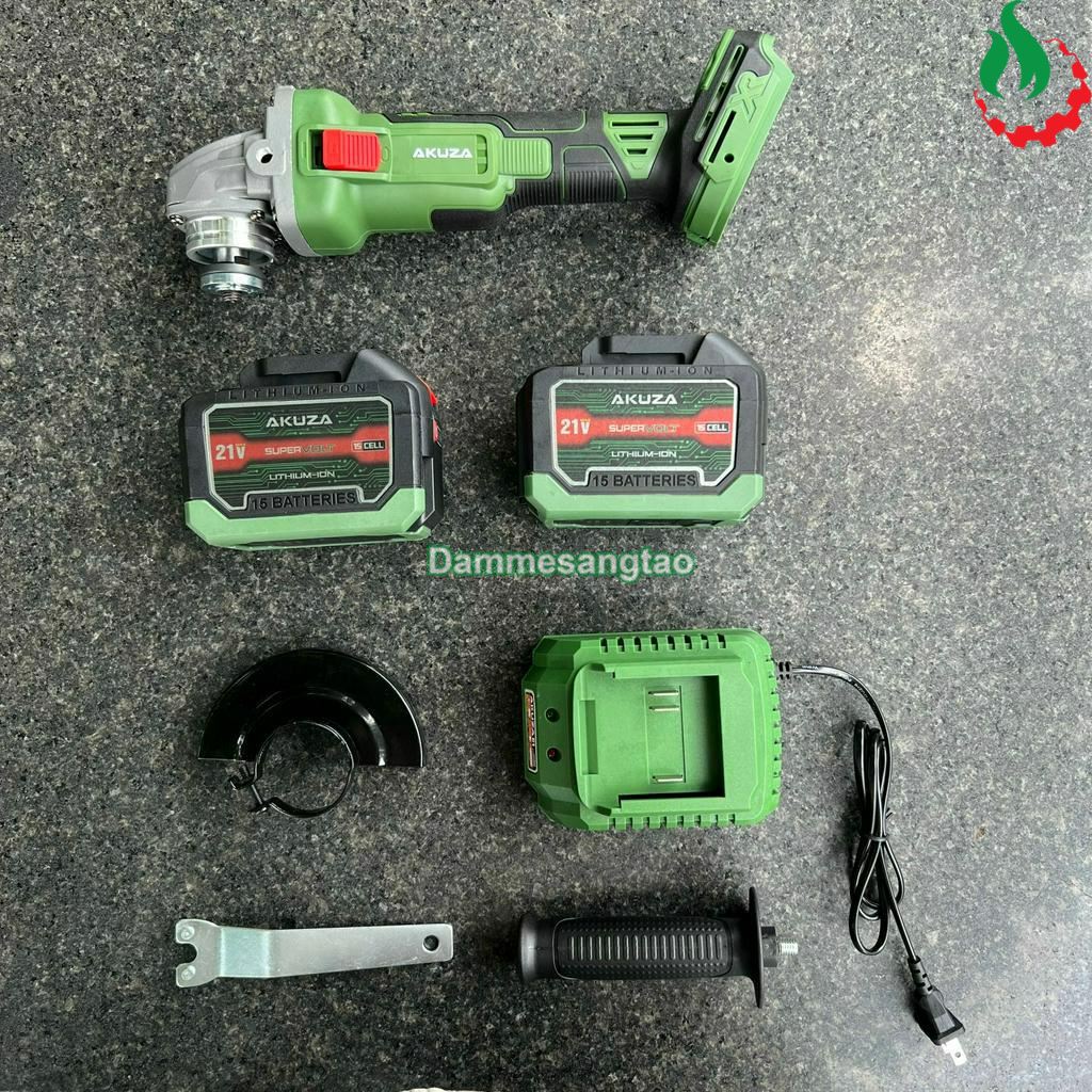 - Full bộ AKUZA: 1 Hộp nhựa, 1 Thân máy mài góc, 2 Pin 15cell, 1 Sạc đế, 1 Tay cầm, 1 Tay khóa, 1 Chắn bảo vệ, 1 Phiếu bảo hành 6 tháng