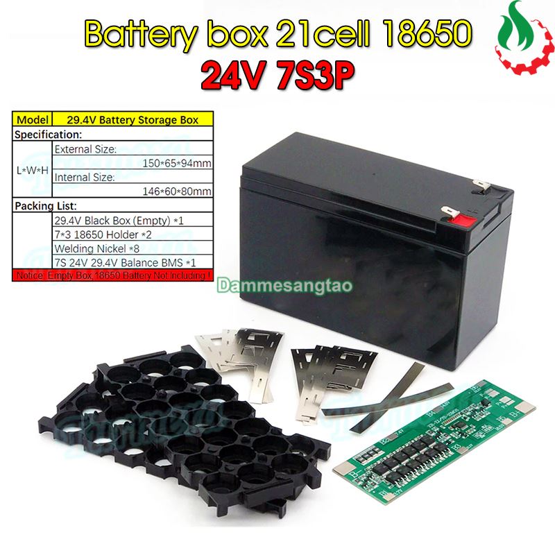 Vỏ bình acquy 21 cell 18650 12V 3S7P hoặc 24V 7S3P (kèm mạch)