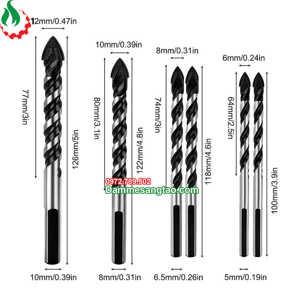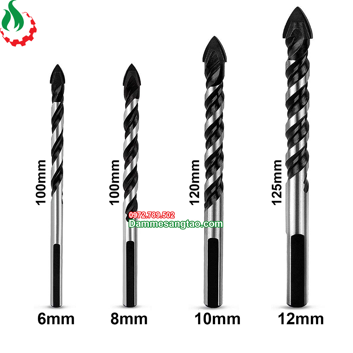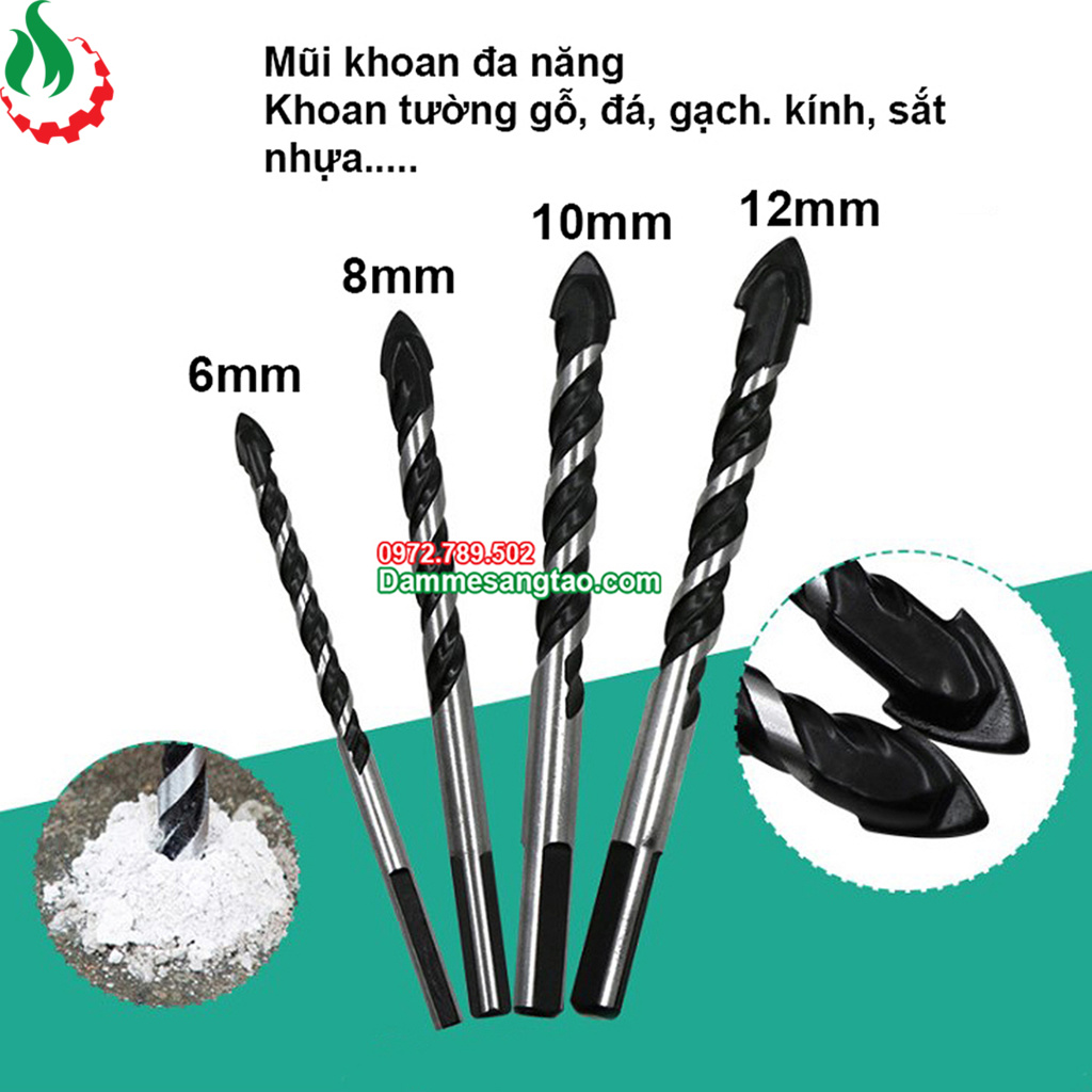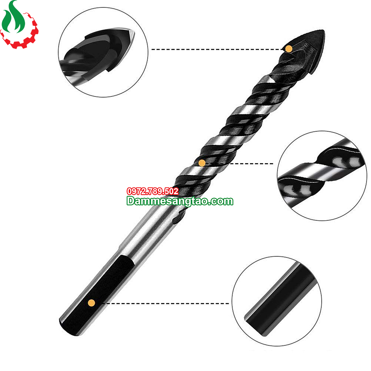 - Mũi Khoan chuyên đít vác cạnh tam giác giúp đầu kẹp khoan giữ chặt hơn.