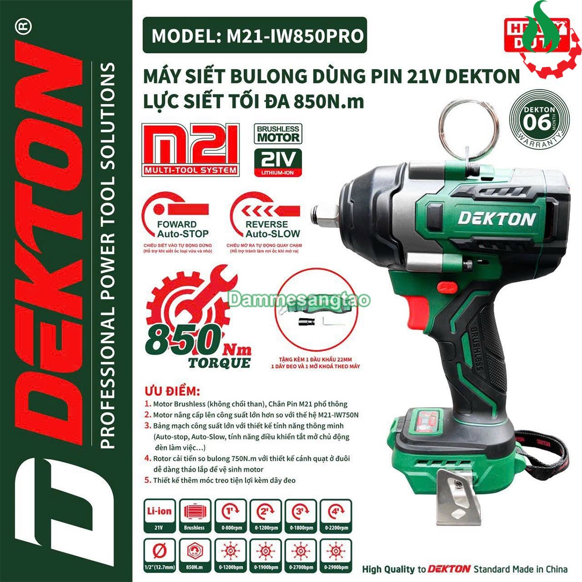 Máy siết bulong pin 21V Dekton M21-IW850Pro 850Nm