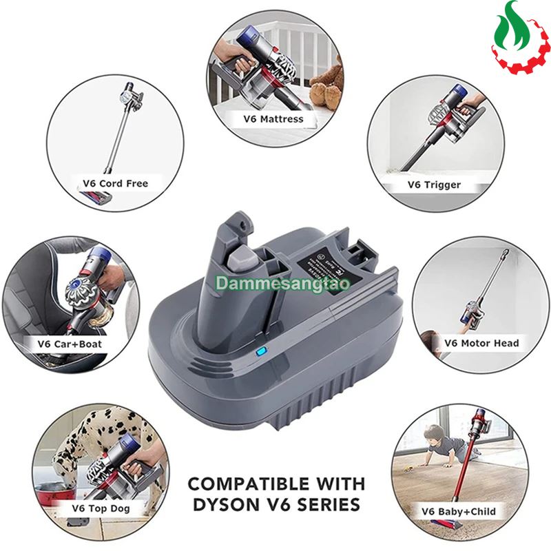 - Thích hợp cho máy hút bụi cầm tay dòng Dyson V6. "Đèn đỏ" có nghĩa là sắp hết pin.