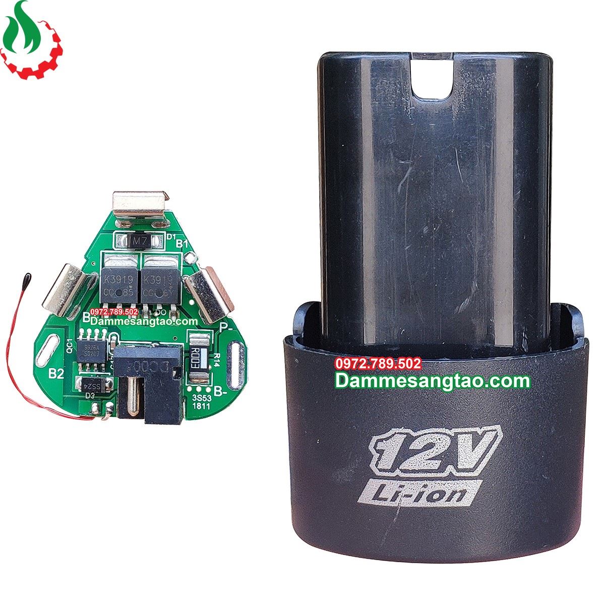 - Vỏ pin được thiết kế dùng cho máy khoan 12V trung quốc.