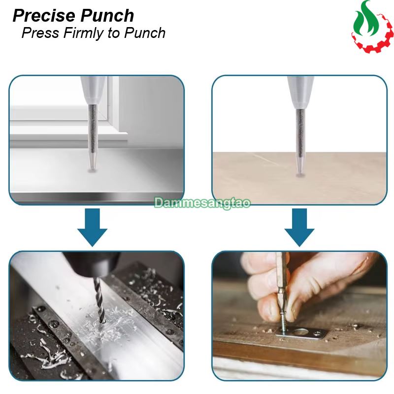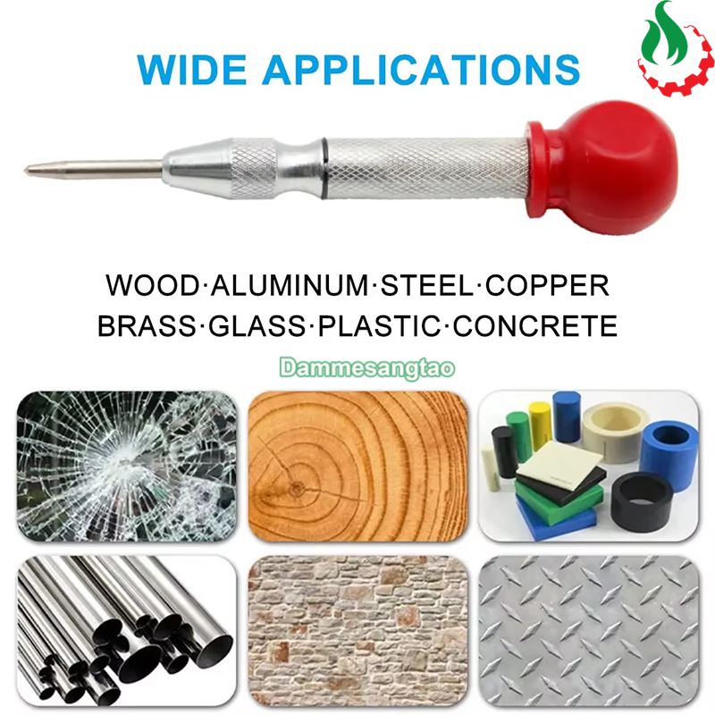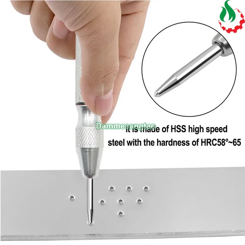 - Công dụng: lấy dấu, lấy tâm trên kim loại, gỗ (không cần dùng búa đóng), phá kính....