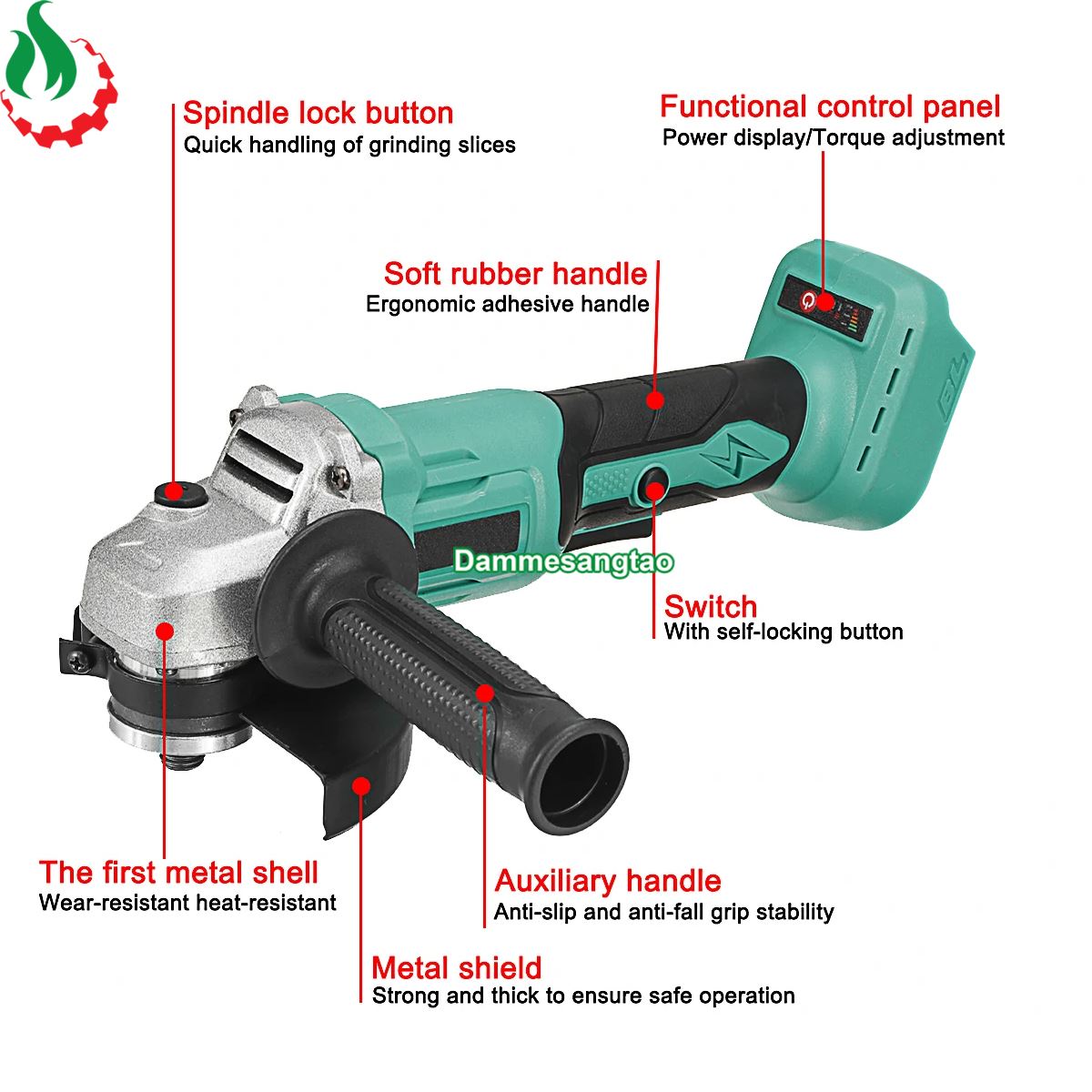 - Thân máy mài góc dùng pin không lớp cao su nên giá thành giảm nhiều so với các máy có cao su.